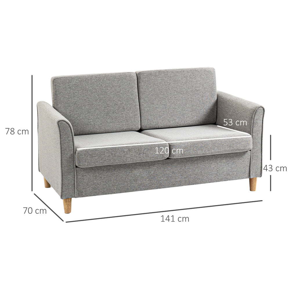 HOMCOM Double Seat Sofa Linen Upholstery Loveseat Couch w/ Armrests, Light Grey