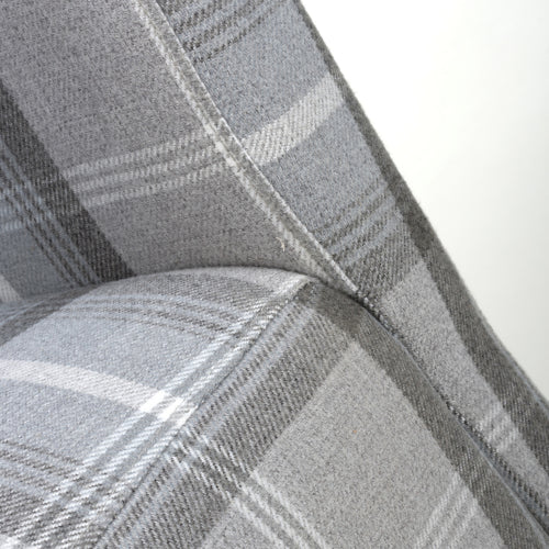 A classic roll back design dining chair, upholstered in striking grey check fabric. Sprung and belted seat. Supplied with natural rubberwood legs. Assembly required. Sold in boxes of 2.