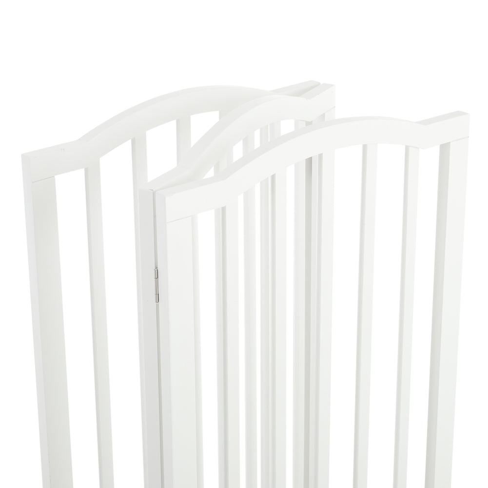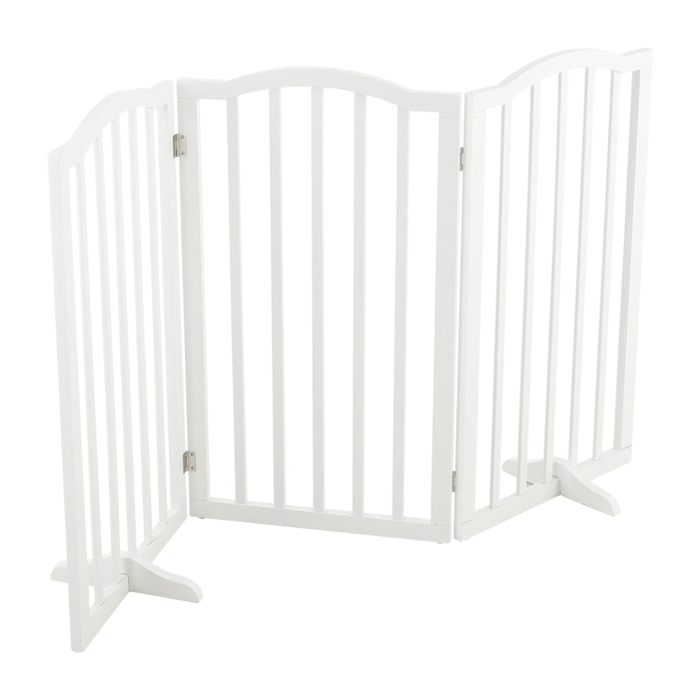 Our pet gate offers a safe and practical solution to section off areas for your pets to play and move freely. The tall panels create an effective barrier for larger animals. Constructed from three separate panels connected with robust hinges, the gate can be arranged in a Z-shape for versatile placement. When folded, it stands independently, making it ideal for use in doorways, hallways, bedrooms, and staircases. This flexible design ensures both safety and convenience for you and your pets.