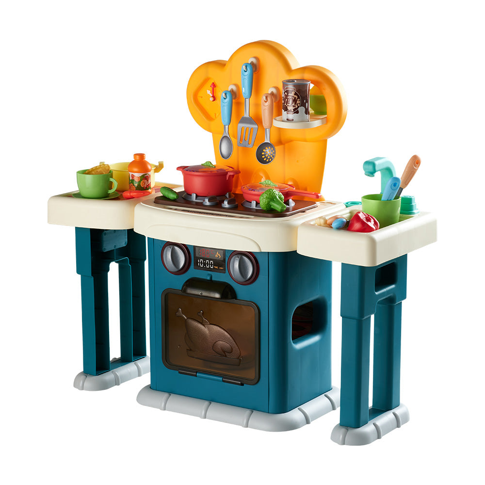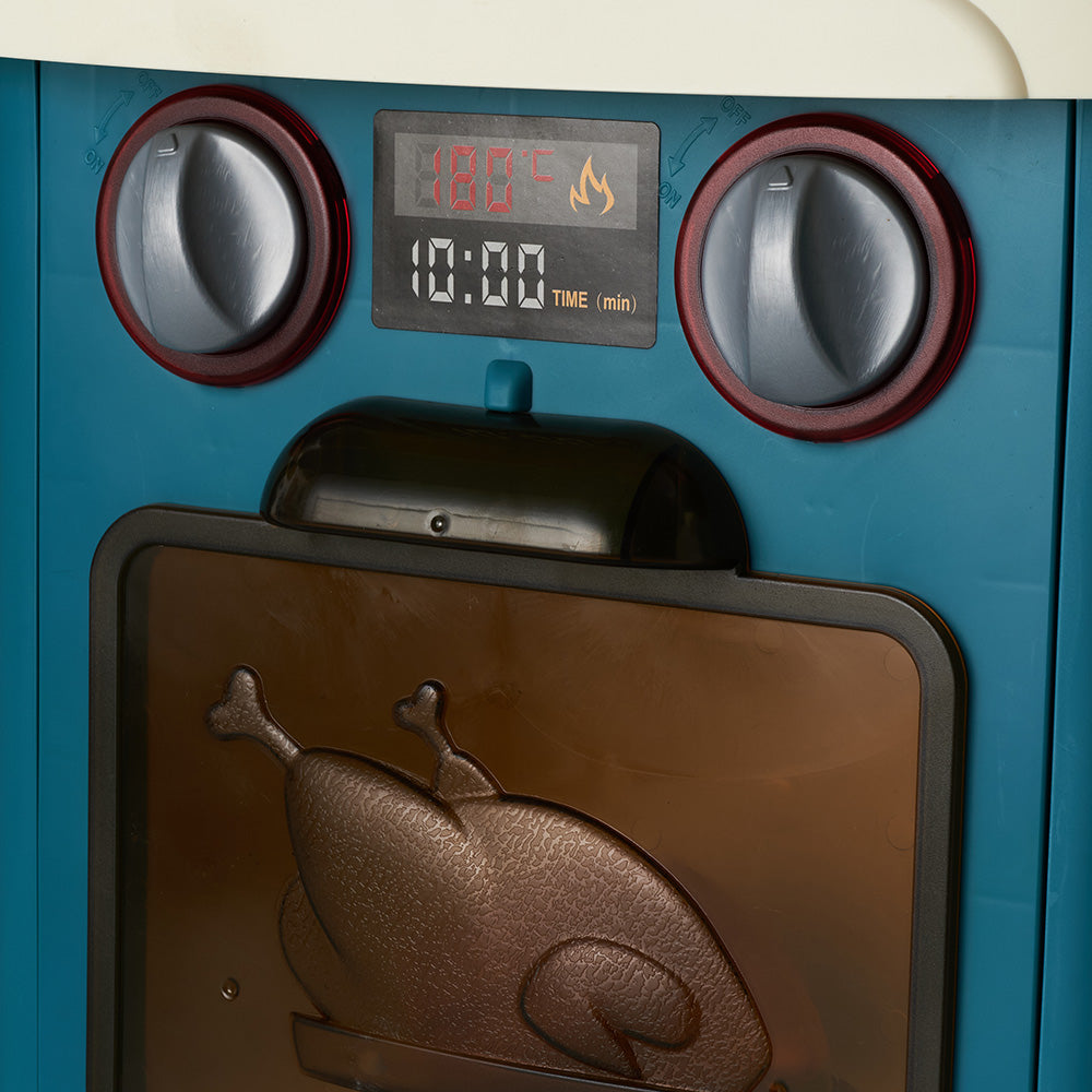 Ignite hours of imaginative play for little chefs with this delightful kitchen playset. Designed at a height suitable for young children, it allows comfortable and engaging play. Made from durable, non-toxic ABS materials, it is safe and long-lasting. Children can practise life skills by washing fruits, vegetables, and dishes in the sink. The included chicken, with hook-and-loop tape, makes a realistic squeaking sound when â??cutâ?, and the oven opens for authentic baking fun. Quick and easy to assemble, this set ensures playtime starts straight away. A fun and educational toy, it inspires creativity and a love for cooking