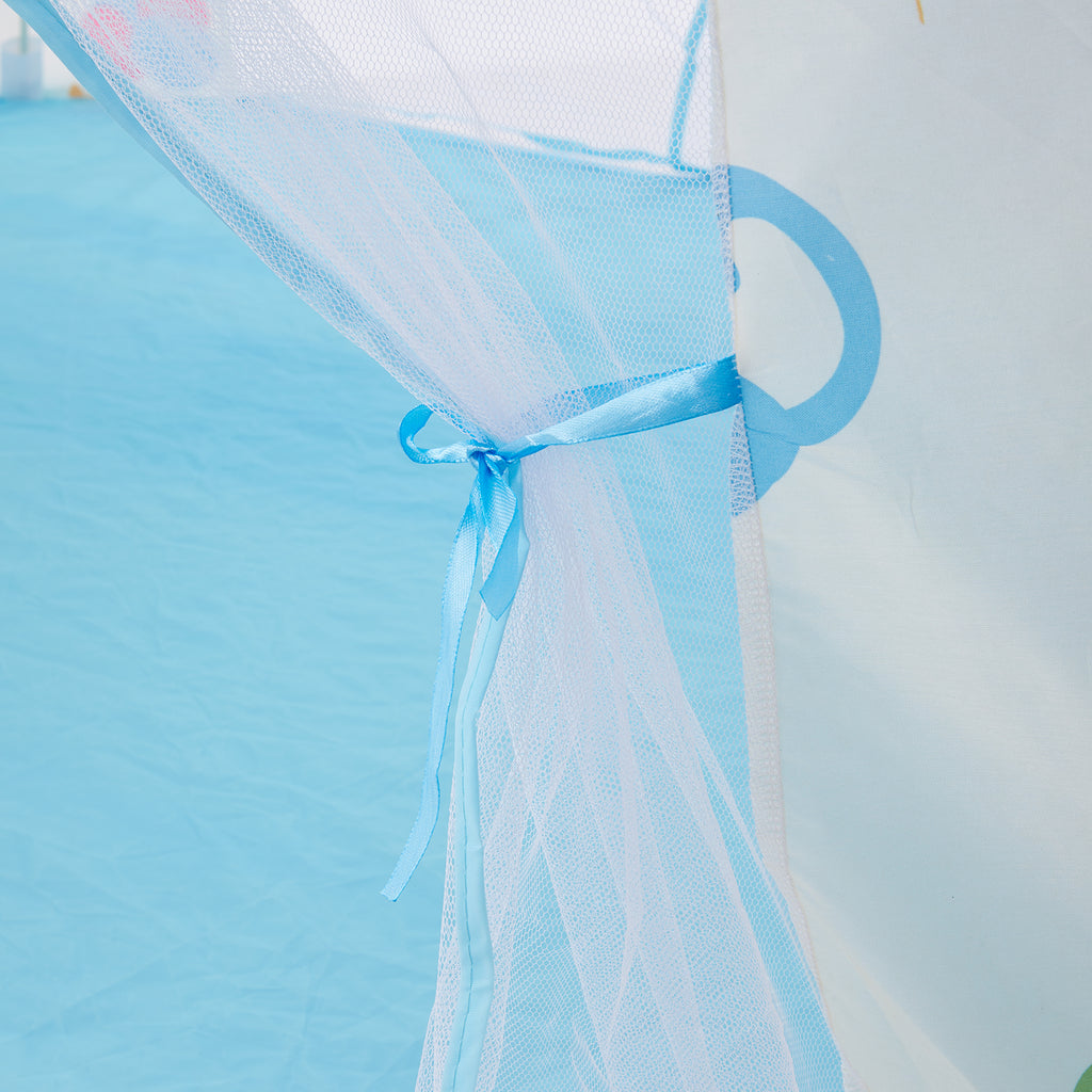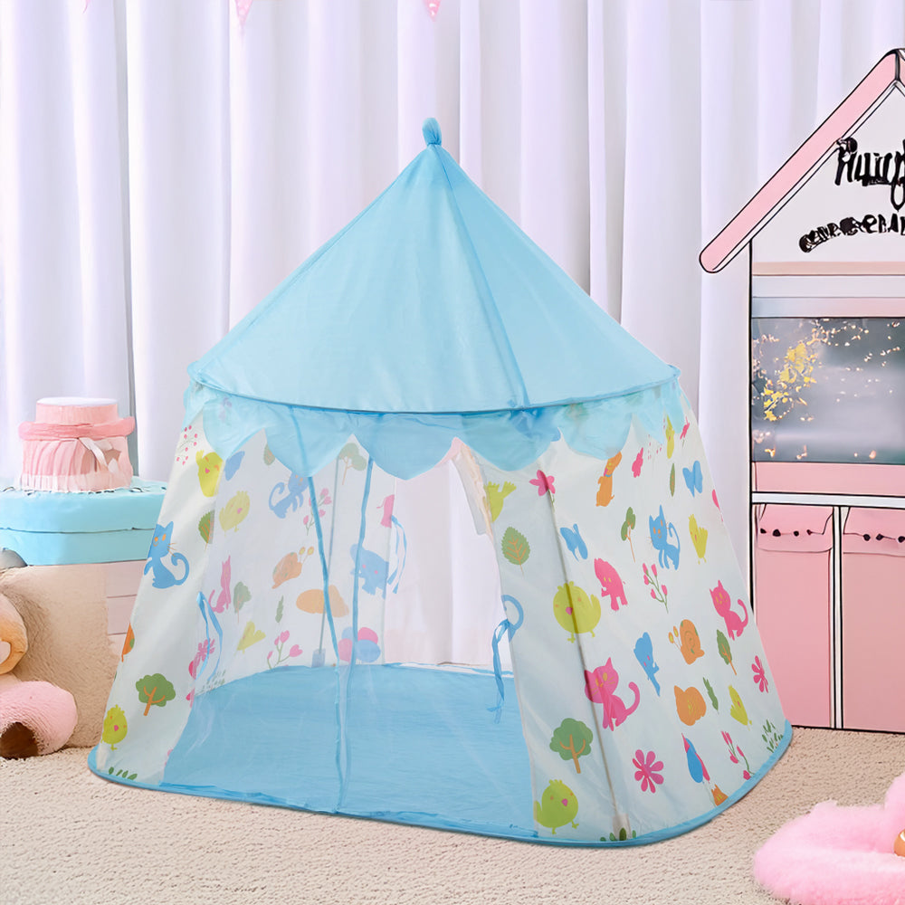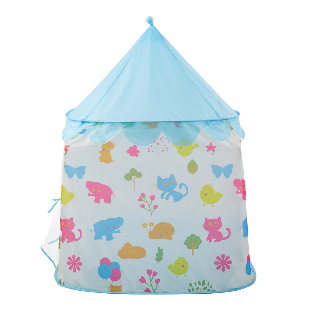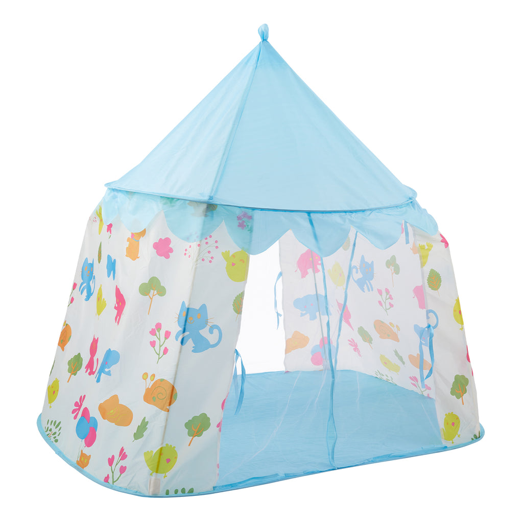 Create a world of imagination for your little one with this delightful play tent. Featuring a light blue exterior and playful cartoon designs, it instantly captures childrenâ??s attention while offering them a cosy, private hideaway. Perfect for indoor fun, outdoor adventures, or a quiet reading nook, this tent inspires creativity and storytelling. Lightweight and easy to assemble, itâ??s ideal for a wide range of playtime activities both inside and out.