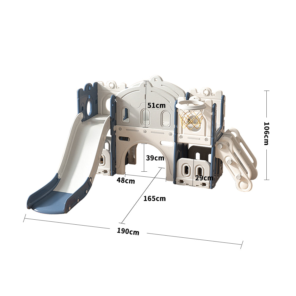 This playset is an all-in-one activity centre that allows children to have fun while encouraging physical exercise. Featuring an extended slide, basketball hoop, climbing hole and two ball pits, it is suitable for both boys and girls and designed to grow with your little ones. It also makes a fantastic gift, providing endless fun and creating happy childhood memories.