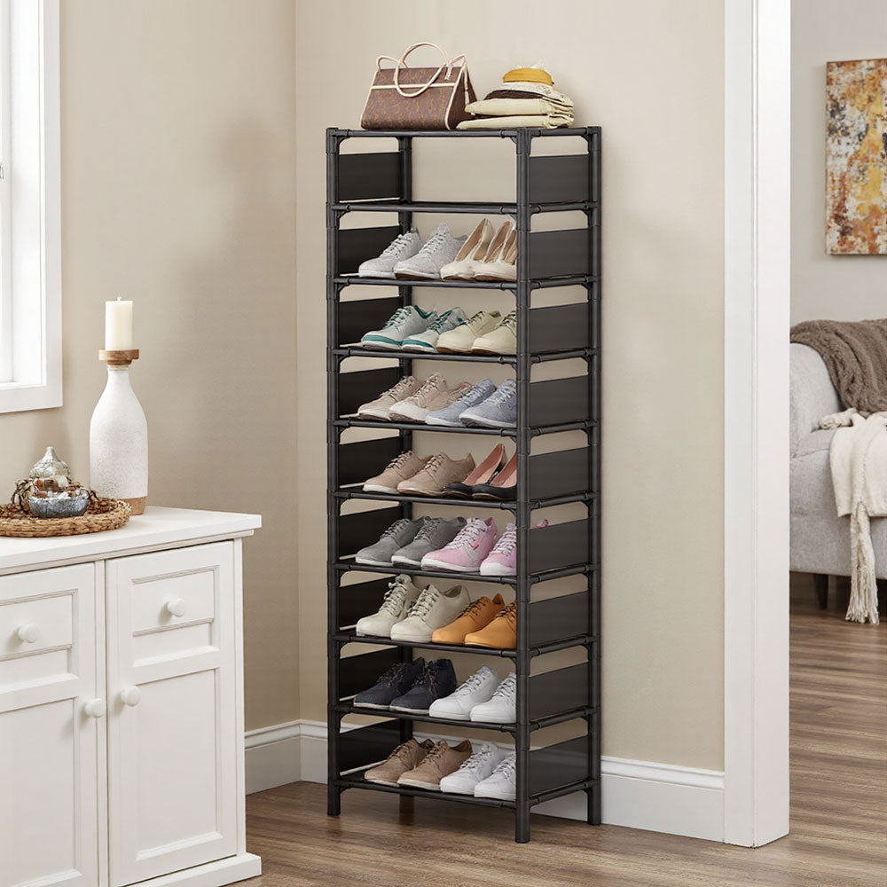 The 10-Tier Shoe Rack for Entryway provides a practical and stylish solution for organising footwear and accessories. Its ten-tier layout maximises vertical space, perfect for compact homes, student accommodation, or busy households. Built from a sturdy steel frame with breathable non-woven fabric shelves, it ensures durability and ventilation for your shoes. Raised guardrails prevent items from falling, and smooth, rounded edges enhance safety. Lightweight and easy to move, this freestanding shoe rack keeps your entryway tidy while offering versatile storage for bags, hats, and more.