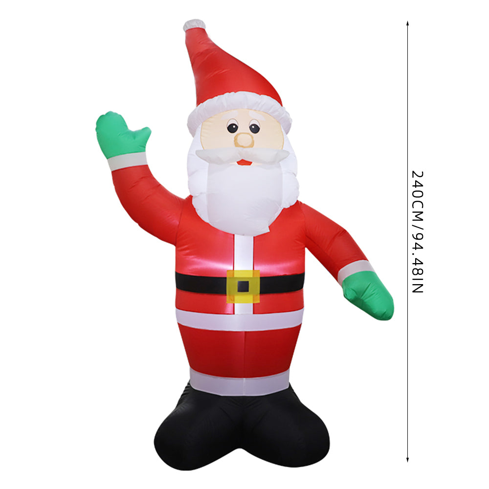 Bring festive joy to your home or garden with this 2.4M Inflatable Santa Claus Decoration! Standing tall and full of holiday spirit, this cheerful Santa is perfect for creating a bright and welcoming Christmas atmosphere. Made from durable, weather-resistant materials, it is suitable for both indoor and outdoor use. With built-in LED lights, this inflatable Santa shines beautifully at night, spreading festive cheer throughout the season.