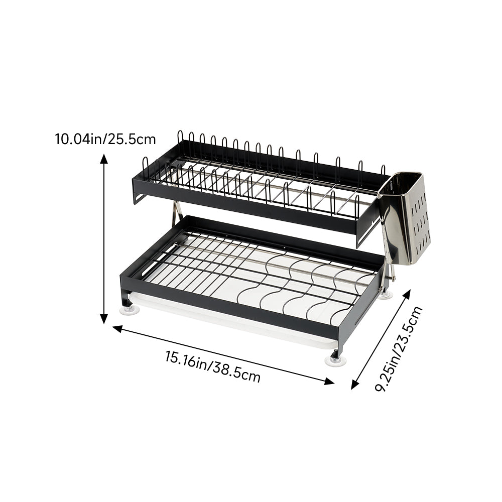 Keep your kitchen organised and efficient with the Lifeideas Dish Drainer. Featuring a double-tier design, it neatly stores plates and bowls while maximising worktop space. Specially designed plate slots keep dishes secure, and the detachable utensil holder can be positioned on either side for convenience. A removable drip tray collects excess water to maintain dry surfaces, while suction pads on the base provide extra stability. Made from sturdy carbon steel with a powder-coated finish, this drainer is rust-resistant, easy to clean, and ideal for kitchens of all sizes.