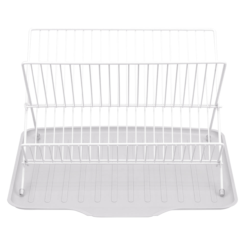 Keep your kitchen tidy and maximise workspace with this Dish Drying Rack. Designed with two spacious tiers, it neatly accommodates plates, bowls, cups, and utensils while promoting fast drying through open-grid ventilation. The removable drip tray directs water neatly into the sink, preventing puddles on countertops. Constructed with a reinforced iron frame and supported by silicone foot pads, this rack is stable, durable, and foldable for easy storage when not in use.