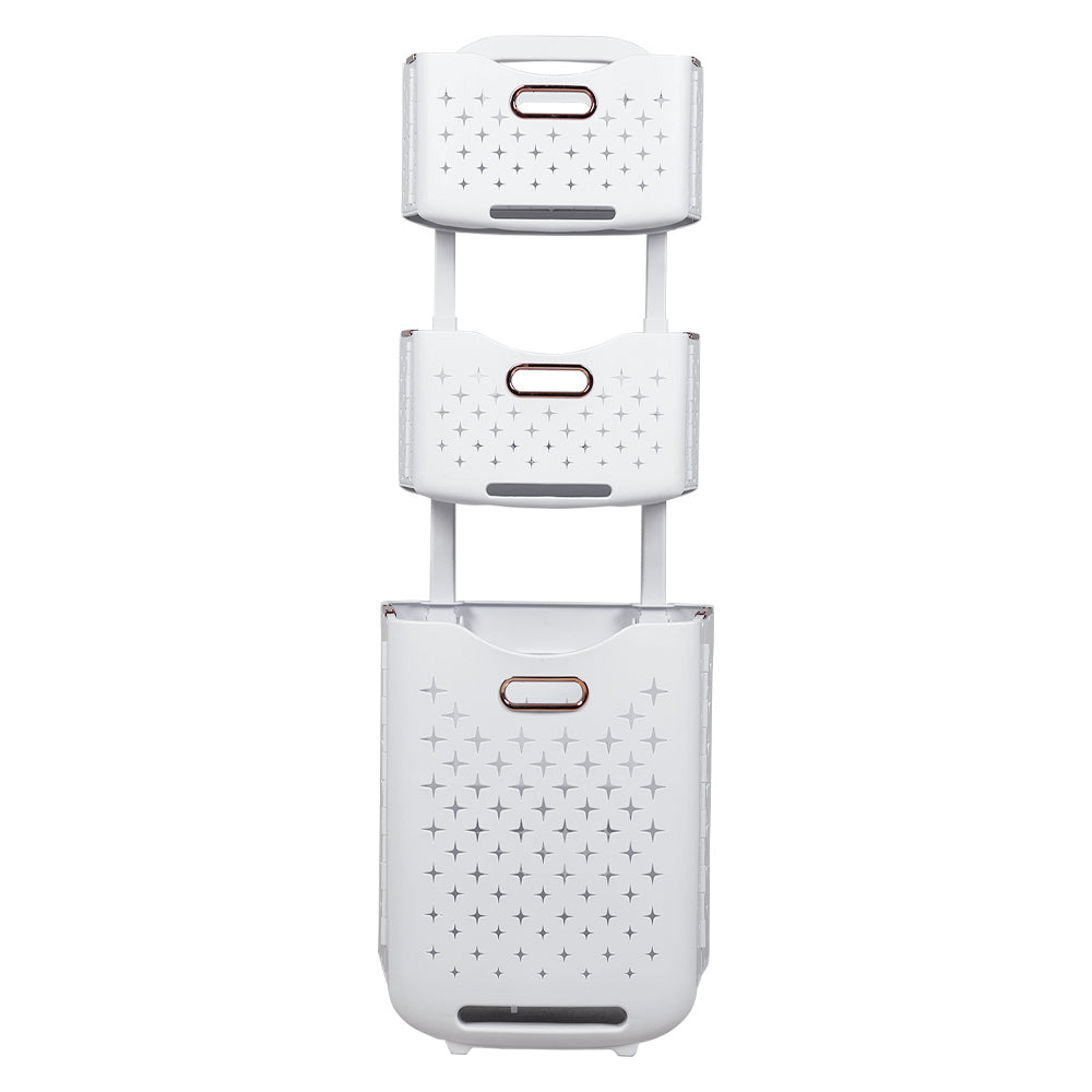 Discover the Laundry Basket, combining modern minimalist design with practical functionality. Made from durable PP and ABS materials, it offers strong load-bearing capacity and long-lasting use. The three-tier structure, with a spacious bottom basket, easily accommodates larger loads of laundry. Hidden foldable handles make it simple to move while occupying minimal space, and the hollowed-out design promotes air circulation to keep clothes fresh and odour-free, making it a practical addition to any home.