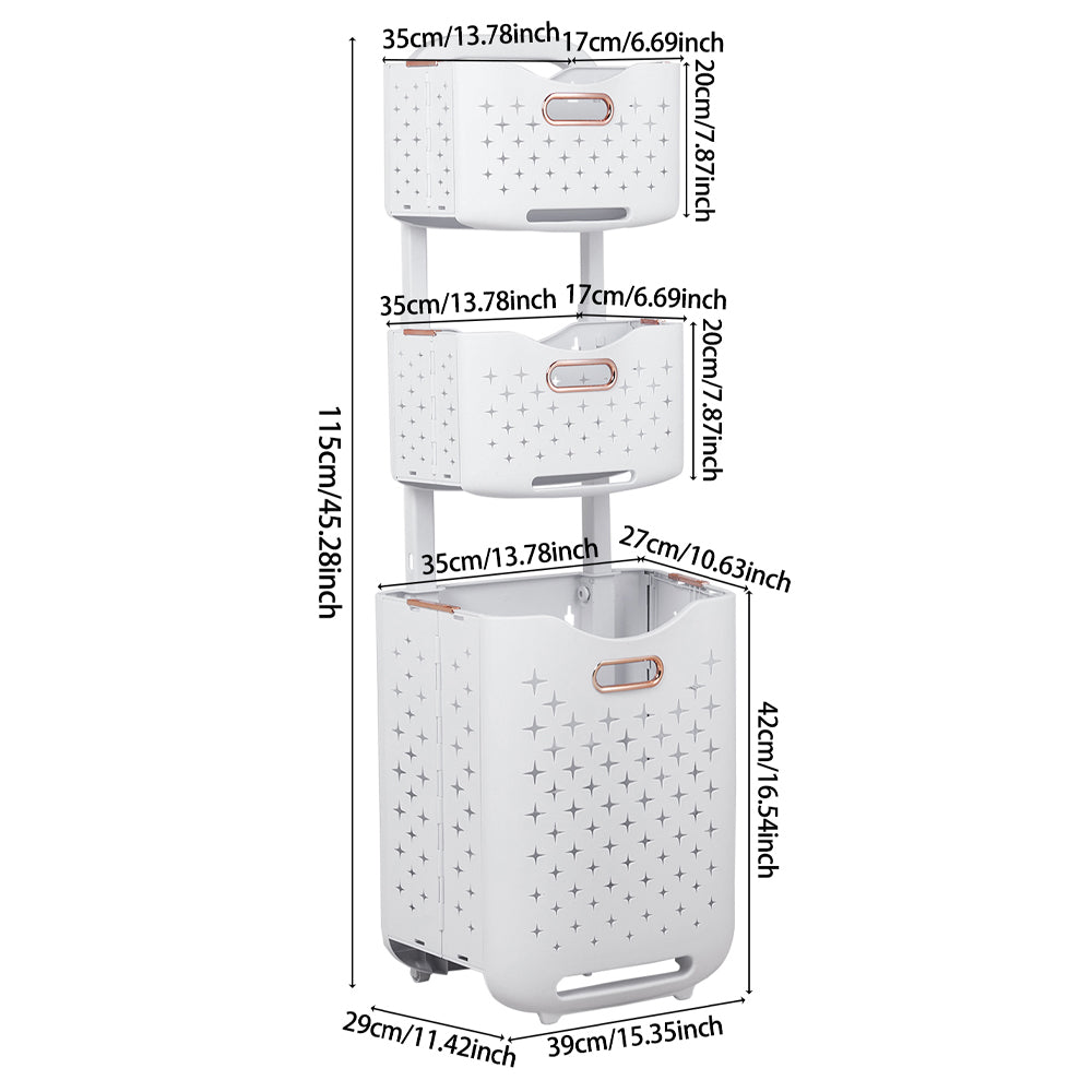 Lifeideas 3-Tier Foldable Laundry Baskets with Casters