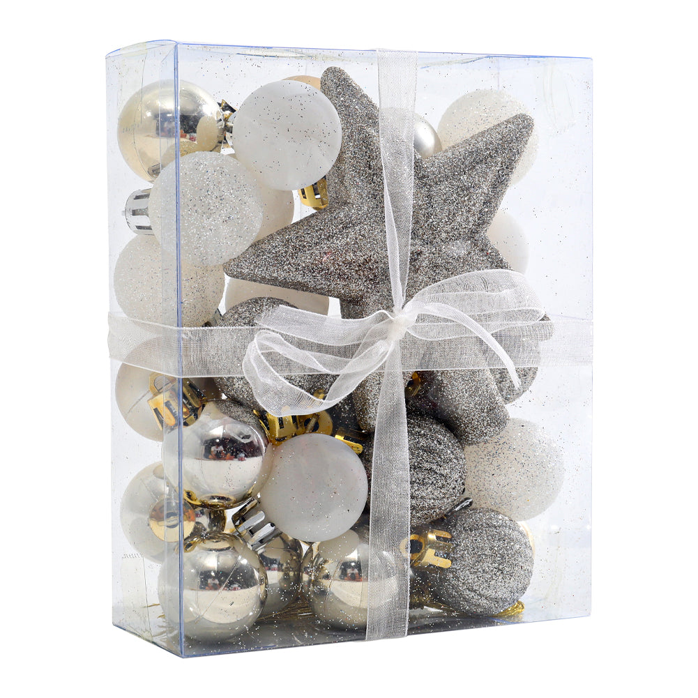 Create a beautifully coordinated festive look with this Christmas tree ornament set, the perfect all-in-one decorating solution for the holiday season. The set includes 29 baubles and a star tree topper, available in two elegant colour options. Each ornament is crafted from durable plastic, making them lightweight and shatterproof for safe and easy use. With this complete set, your Christmas tree will sparkle with charm and elegance, bringing warmth and festive cheer to your home throughout the winter.