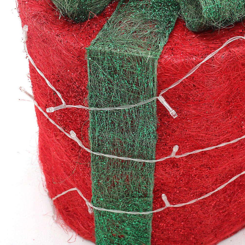 Bring a sprinkle of festive cheer with these delightful Christmas gift box decorations! Unlike conventional square designs, their unique round shape adds a fresh, eye-catching touch to your home décor. Each box is topped with a delicate bow, lending elegance and depth, and making every piece captivating. Illuminated with warm LED lights, they instantly brighten any space, casting a cosy, enchanting glow. Perfect for placing under the tree, on windowsills, or even on covered porches, they are ideal for Christmas parties and creating memorable seasonal displays.