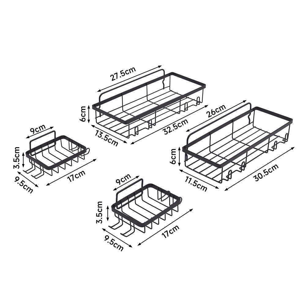 Transform your bathing experience with this practical shower caddy set. Comprising two large and two small racks, it provides organised storage for toiletries, toothbrushes, soap, and other bathroom essentials, helping maintain a clutter-free space. The no-drill design allows installation without damaging walls, making it perfect for renters. Finished with a waterproof and anti-corrosive black coating, the caddies remain resistant to scratches and fading, ensuring long-lasting durability even in humid conditions.