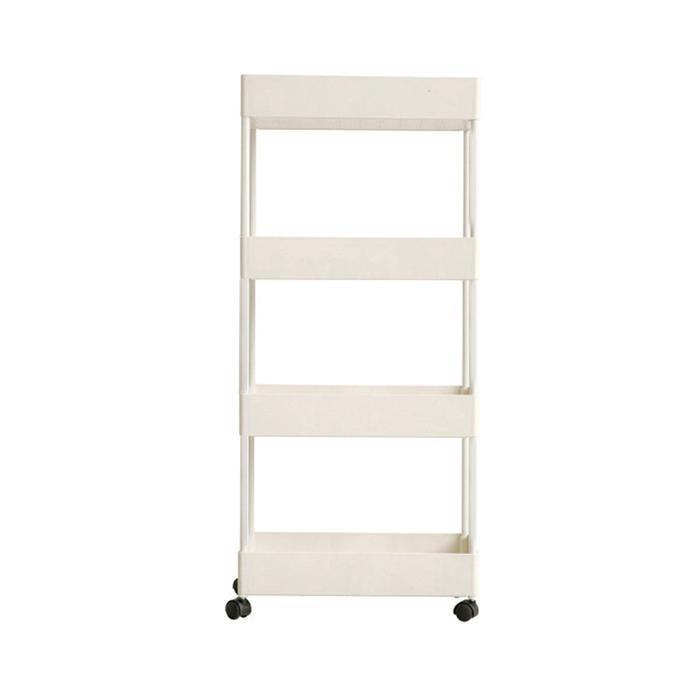 Keep your home tidy and organized with the Slim 4 Shelf Organizer Trolley with Wheels. Made from high-quality ABS material, this lightweight yet sturdy cart is resistant to rust and cracking, ensuring long-term use. Its slim and compact design fits perfectly in small spaces like kitchens, bathrooms, and laundry rooms, helping you make the most of vertical space. The hollow carved shelves provide excellent ventilation and drainage, ideal for storing toiletries, cleaning supplies, and kitchen essentials. With smooth-rolling casters, you can easily move the trolley wherever you need it â?? a practical and stylish solution for modern homes.