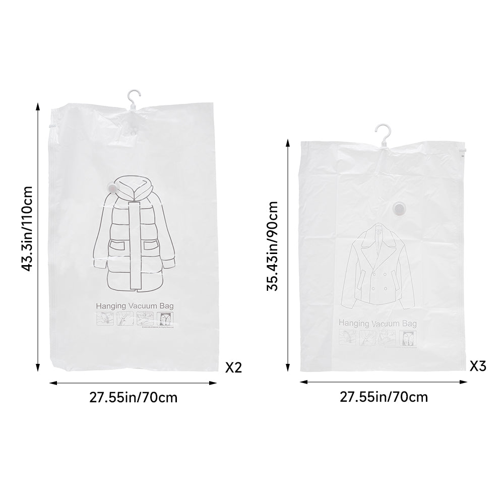 As the seasons change, your wardrobe does too. Our Hanging Vacuum Compression Bags provide the perfect solution for storing off-season clothing, from winter sweaters to bulky coats. Simply pack your garments into the bags, seal them tightly, and use the included vacuum pump to remove the air. Within moments, your clothes are compressed into a compact, space-saving package that can be hung in your wardrobe or stored neatly in a cabinet, keeping your home organised and clutter-free.