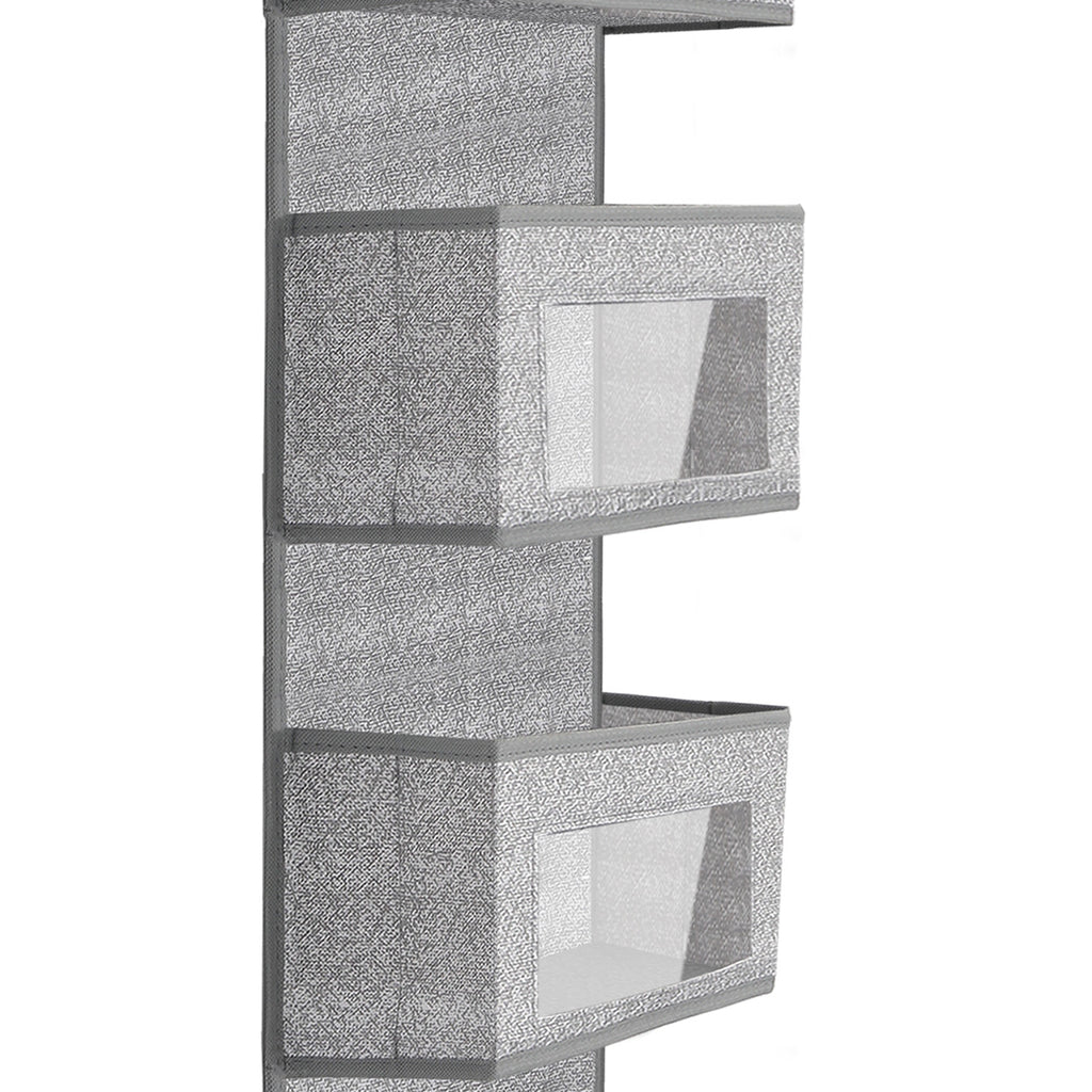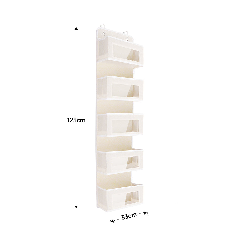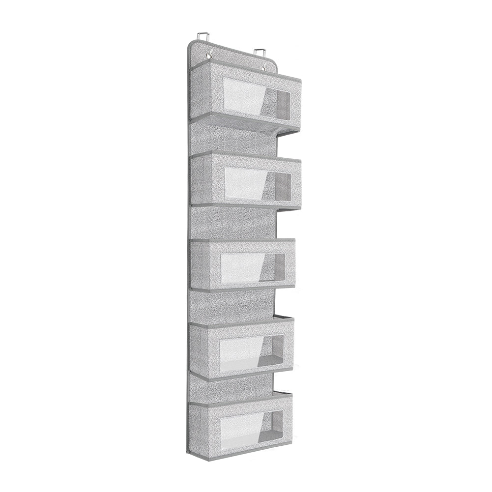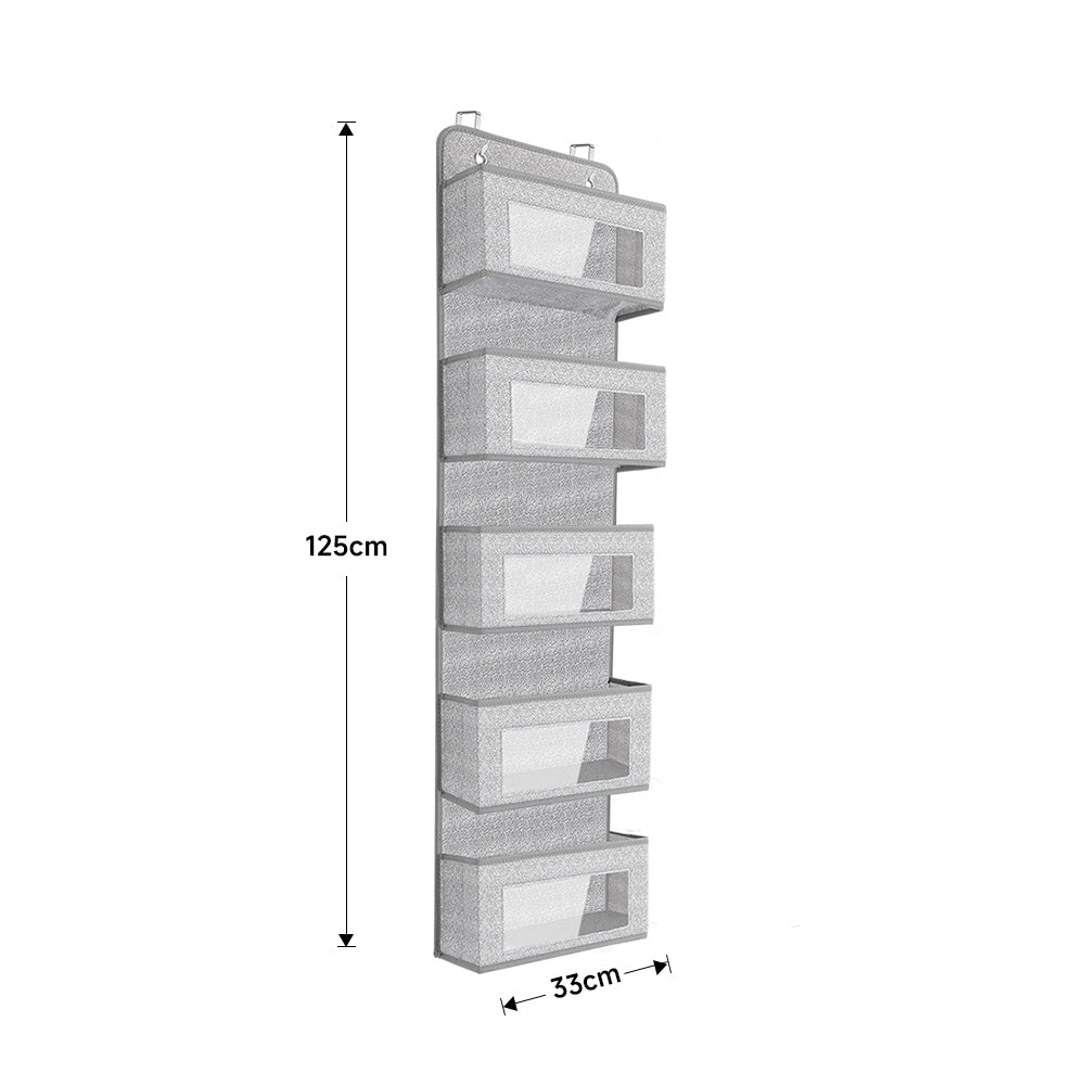 Maximise your storage space and keep everyday items neatly organised with the Lifeideas Over-the-Door Organiser. Featuring five spacious pockets, it is ideal for storing accessories, small toys, toiletries, and other essentials. Each pocket has a sturdy cardboard base to maintain its shape and prevent sagging. The included two door hooks allow for secure hanging over any standard door, making it a practical and space-saving addition to your home.