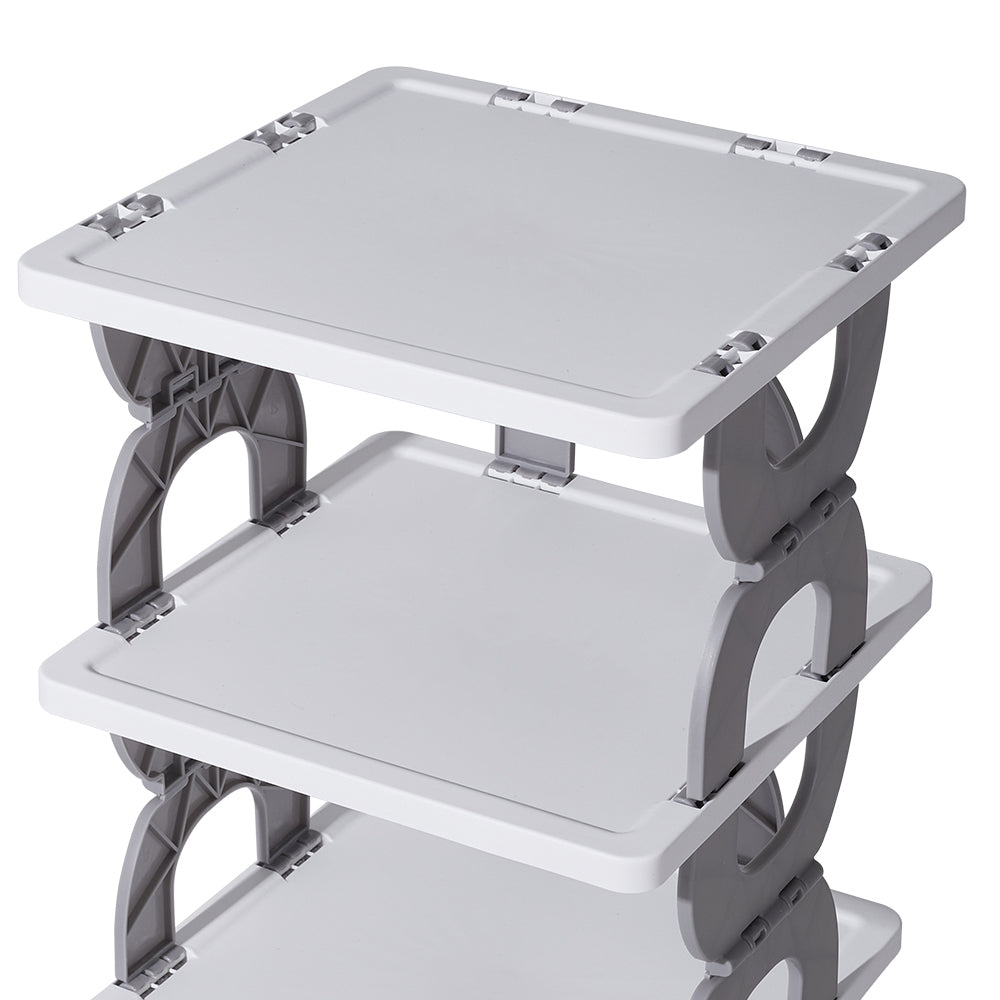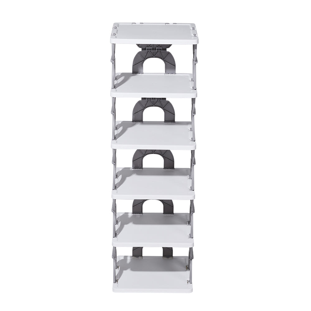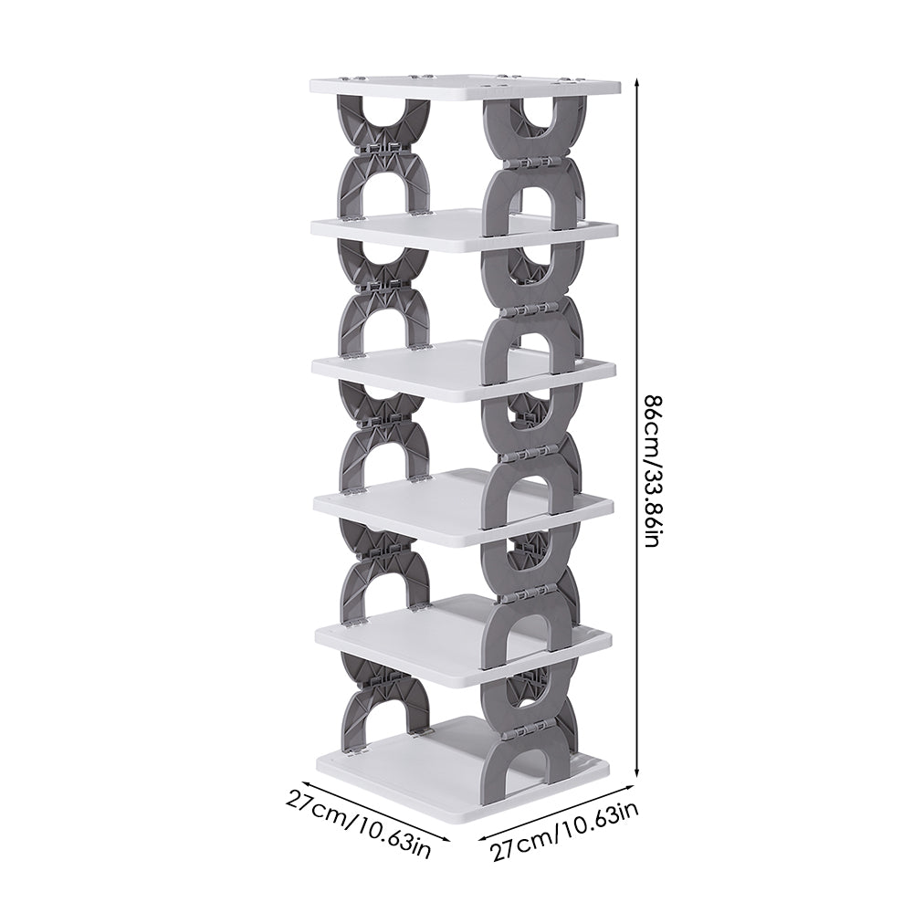 This folding shoe rack offers a practical and space-saving solution for organising your growing shoe collection. With six tall tiers, it fits neatly into any corner, maximising storage without taking up unnecessary floor space. Made from high-quality plastic, the rack is durable, stable, and capable of accommodating a variety of shoe types. Simply unfold it for instant use and enjoy a tidy, organised environment.