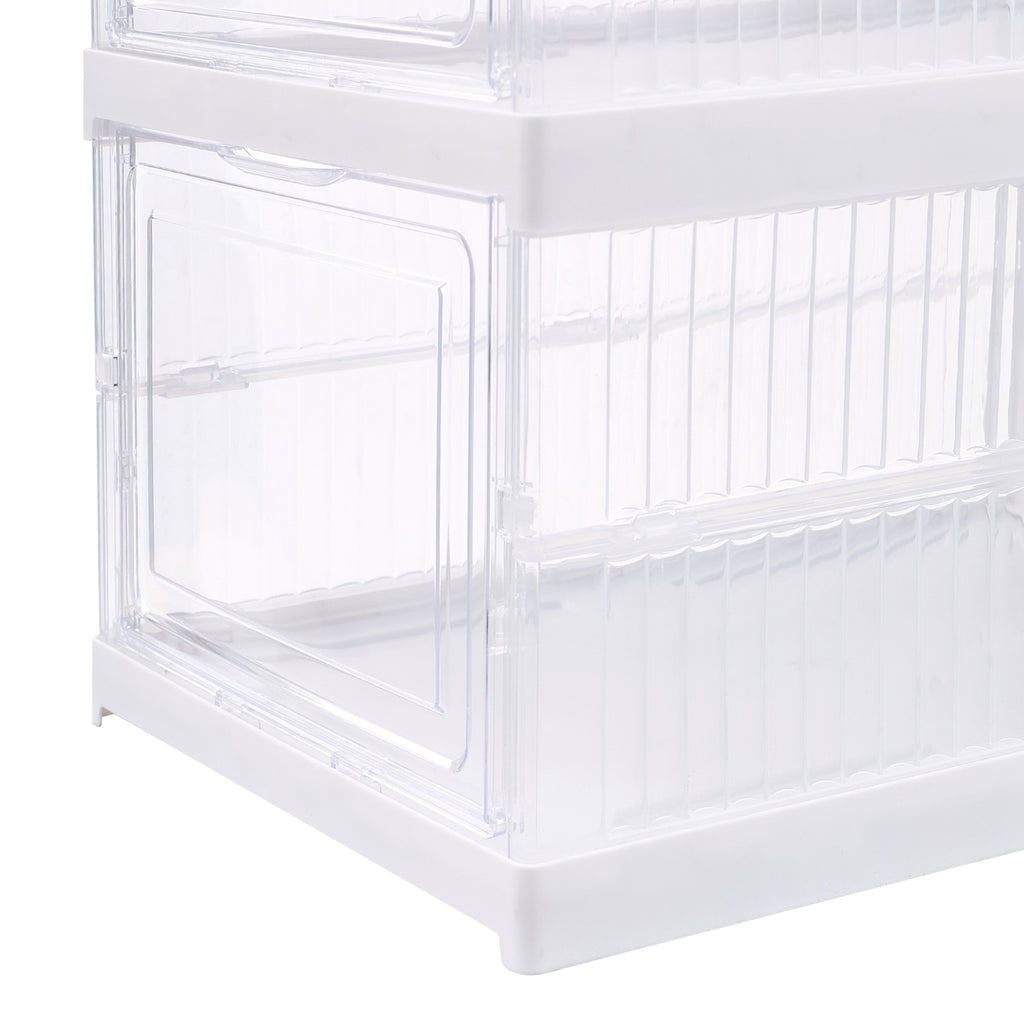 Keep your footwear organised and easily accessible with this set of transparent shoe storage boxes. The clear exterior allows you to see the contents at a glance, making it simple to choose your shoes quickly. Each box comes with a lid to protect shoes from dust and moisture, and the stackable design lets you maximise storage while saving space. When not in use, the boxes can be folded flat for compact storage. Made from non-toxic, odourless plastic, these shoe boxes are durable, eco-friendly, and built to withstand daily use.