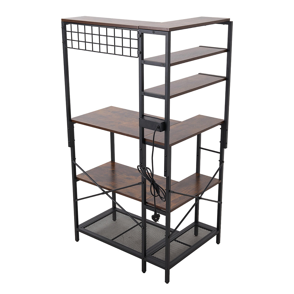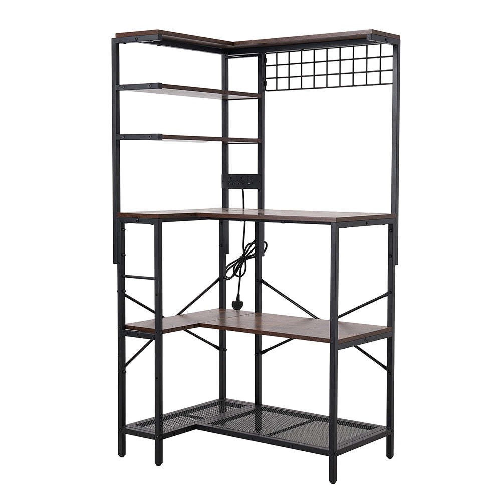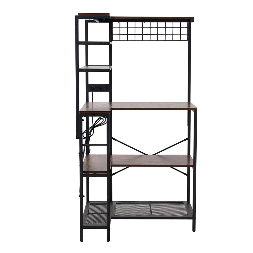 The 6-Tier Vertical Kitchen Storage Rack provides a versatile and practical storage solution for modern kitchens. Its six-tier design offers ample space for appliances, spice jars, mugs, and cookware, keeping essentials organised and within reach. Built from a sturdy steel frame with durable wood shelves, it combines stability with long-lasting durability. Integrated dual electrical outlets and USB ports allow convenient use of small appliances and device charging. Compact and freestanding, this bakers rack also works well as a coffee bar, plant display, or study organiser, adapting seamlessly to any room.