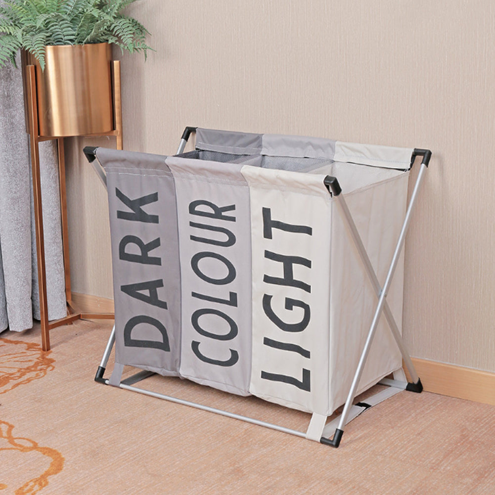 Say goodbye to mixing darks and whites on laundry day with this cleverly designed three-compartment laundry sorter. Ideal for organising laundry by colour, fabric, or wash temperature, it keeps your home tidy while simplifying your washing routine. Made from high-quality 600D Oxford fabric with a PE coating, it is waterproof, dustproof, and breathable, while the aluminium frame ensures stability and balance. Lightweight and easy to carry, it is a practical and stylish addition to any laundry room.