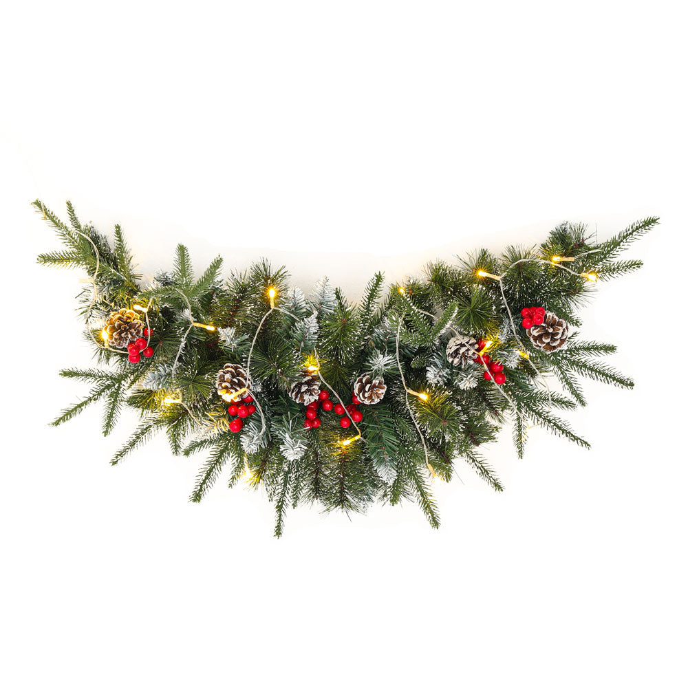 Adorn your front door with this elegant Christmas mantel swag and bring festive cheer to your home. Crafted from lush, classic needles and accented with burgundy berries, pine cones, and other seasonal details, it forms a graceful arc. Hung upright or upside down, it creates a charming display. On a winterâ??s evening, let the warm glow of your fireplace complement the soft lights of the decoration, creating a magical Christmas atmosphere to enjoy with loved ones.