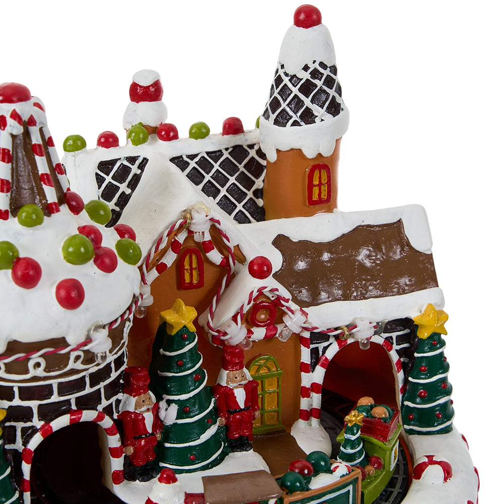 Bring timeless charm to your festive décor with this enchanting Christmas Music Box featuring a delightful castle design. A miniature train carrying Santa Claus gracefully circles the base, creating a whimsical holiday scene full of joy and nostalgia. Playing eight classic Christmas tunes, this piece spreads cheer throughout your home, while warm LED lights illuminate the intricate details, adding a cosy and inviting glow to your seasonal decorations.