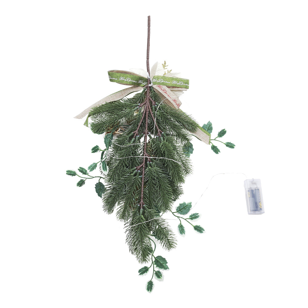 This festive Christmas swag features lush green needles and leaves that capture the classic holiday spirit. Accented with gold baubles, berries, and a sparkling poinsettia topped with a bow, it makes a striking decorative piece. Switch on the built-in lights for a magical glow at night. Perfect for hanging on doors, walls, or windows to celebrate the Christmas season in style.