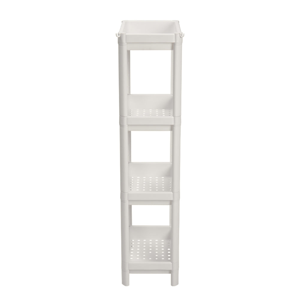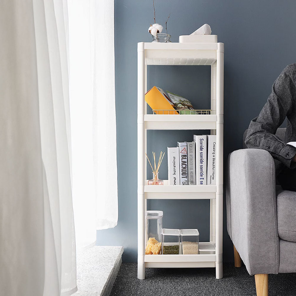 The Compact 4-Tier Freestanding Storage Rack is a practical and stylish solution for organising any space. Its four open shelves provide easy access and clear visibility for household items, while the bottom hollow-out design ensures items stay dry and hygienic. Made from durable plastic, it is lightweight yet sturdy, supporting daily essentials with ease. Side hooks offer additional hanging storage, and the sleek white design complements any interior. Freestanding and compact, it is ideal for bathrooms, kitchens, or living areas where space is limited.