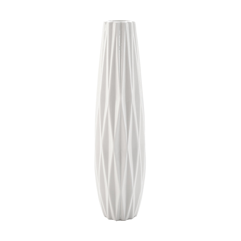 Inspired by Scandinavian design, the Lifeideas ceramic vase combines elegance and simplicity with a smooth white surface and distinctive diamond-shaped cutting. Its slim and tall profile draws attention to your flowers, whether artificial or real, as it can hold water for live plants. Perfect for display on a coffee table, windowsill, or shelf, this vase adds a refined and timeless touch to any interior decor.