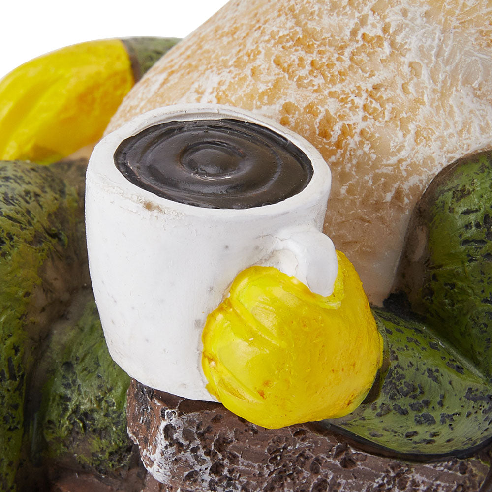 Bring a touch of storybook charm to your home with the Lifeideas Frog Prince ornament. This whimsical resin figurine depicts the prince seated cross-legged, leisurely enjoying a cup of coffee as if lost in his own fairy-tale world. Hand-painted with attention to detail, the realistic textures and vibrant colours enhance its enchanting appeal. Perfect for desktops, shelves, or even as a playful garden accent, this Frog Prince ornament adds personality and a hint of magic to any space.