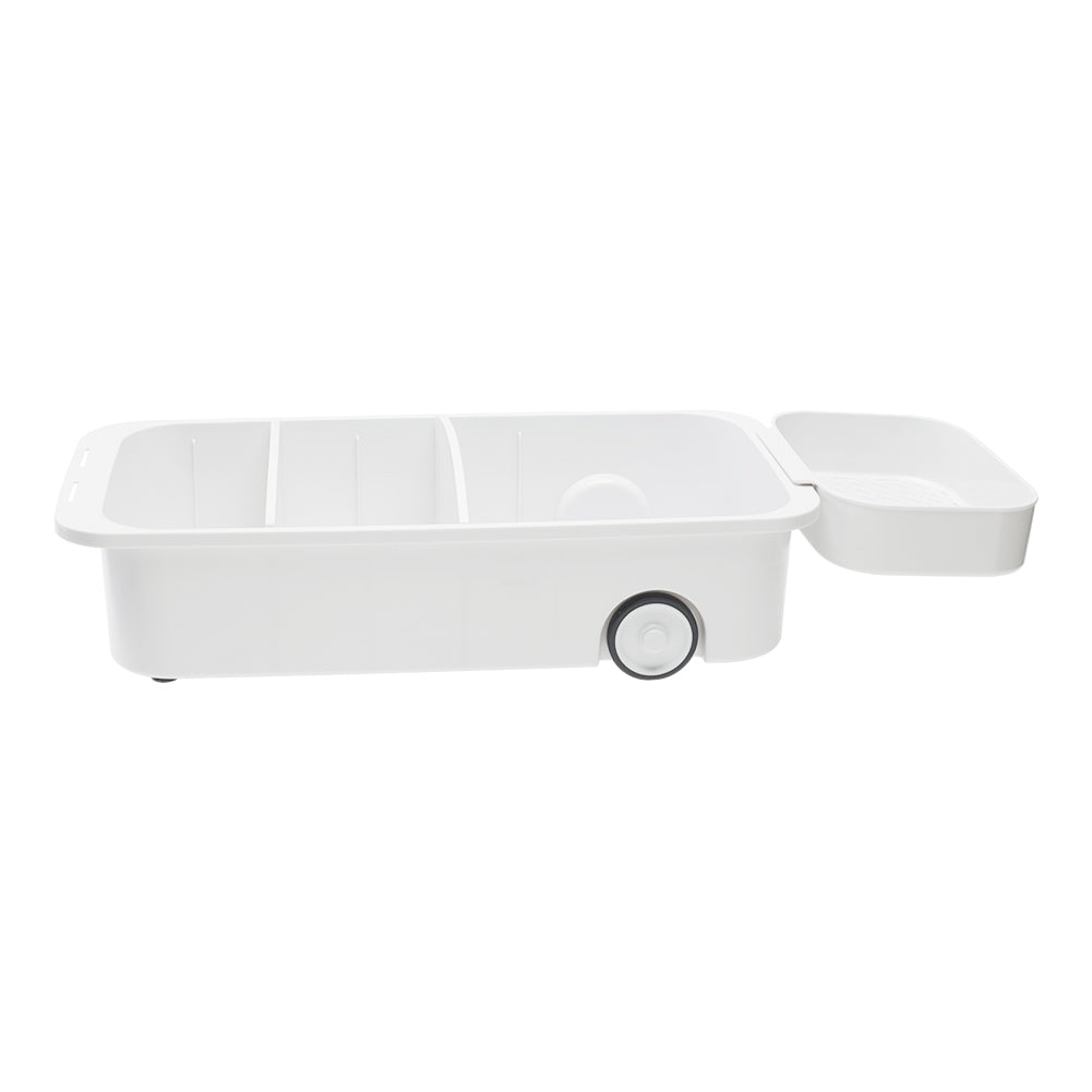 The Grey Sliding Storage Basket with Dividers provides a clever and practical solution for organising under-sink spaces. Its pull-out design maximises storage, making it easy to access cleaning supplies, sponges, or other items. Equipped with two adjustable dividers and a side drainer basket, it keeps wet items separate and allows air circulation for quick drying. Made from durable plastic with a thickened support structure, it ensures stability while maintaining lightweight portability. The playful car-shaped wheels add a fun element while making retrieval of items effortless.