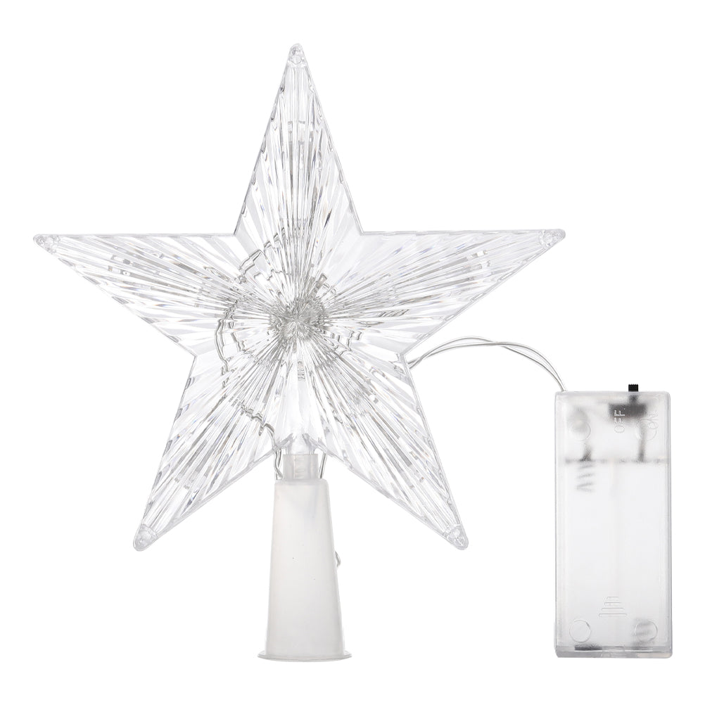Crown your Christmas tree with this stunning star topper, a timeless five-pointed symbol of festive joy that instantly fills your home with holiday magic. Radiating with vivid, multicoloured LED lights, it creates a mesmerising glow that brings warmth and delight to your celebrations. The steady illumination ensures a calm, elegant display throughout the season. More than just a tree topper, this charming piece can also be used to decorate walls or windows, or make a thoughtful festive gift. Itâ??s the ideal finishing touch to elevate your Christmas décor and make your festivities truly sparkle.