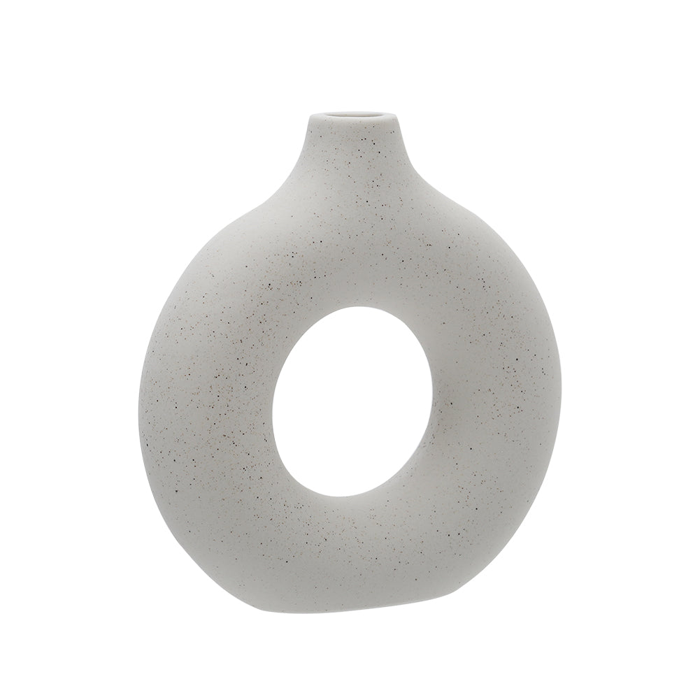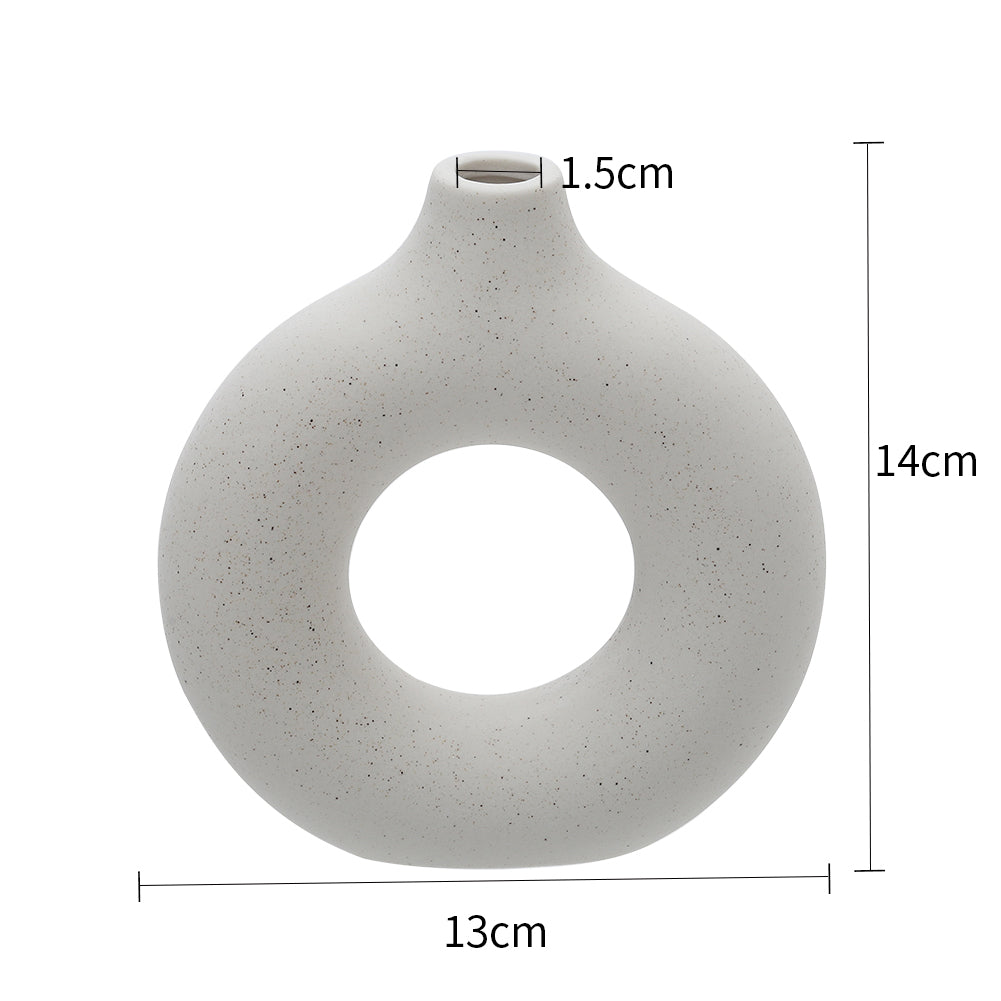 Embrace the essence of Nordic design with this ceramic round vase from Lifeideas, finished in a clean and crisp white. Its central hollow, reminiscent of a donut, adds a playful touch to its Scandinavian charm. Perfect for displaying flowers or as a standalone decorative piece, this versatile vase enhances any dining table, mantel, or bookcase, effortlessly elevating the style of your living space.