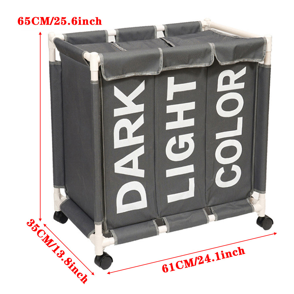 The Oxford Fabric Laundry Storage Hamper is a practical solution for keeping your laundry organised. Its three sections allow clothes to be sorted by colour or type, while the removable polyester liners are machine washable for convenience. Constructed with durable 600D Oxford fabric and a strong frame, this laundry trolley is built to last. Equipped with four heavy-duty castors, it glides easily between rooms, and locking wheels keep it secure when stationary. Lightweight, compact, and easy to assemble, it is ideal for bedrooms, utility rooms, or laundry spaces.