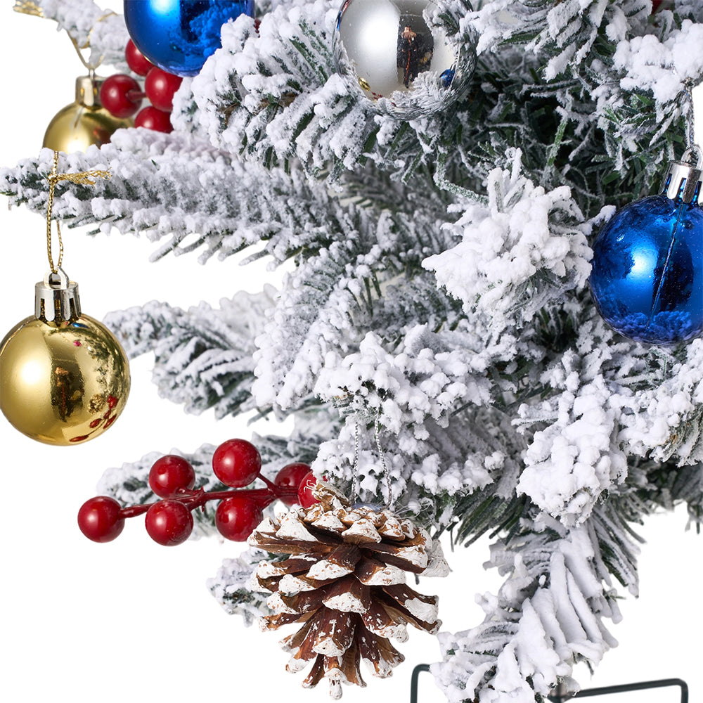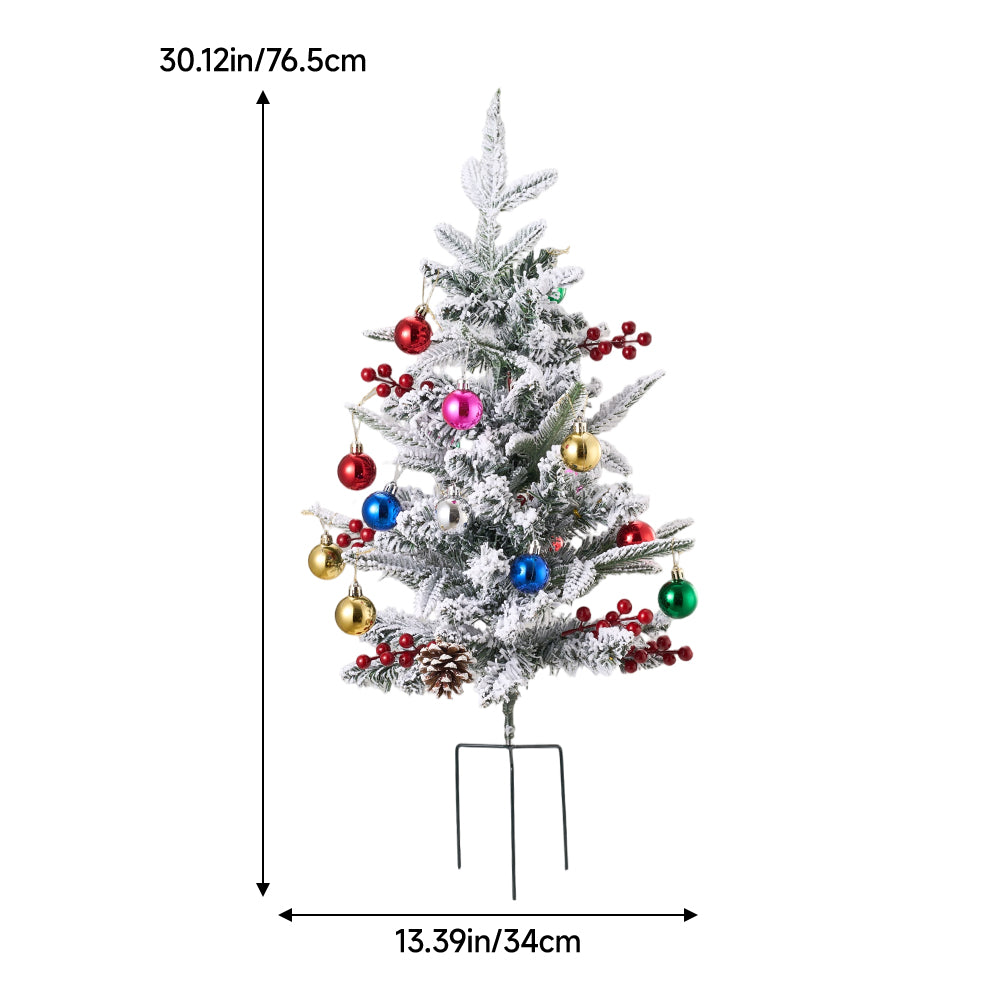 Enhance your outdoor decor with this 2-pack of Christmas trees. Each tree is equipped with a sturdy metal tripod stake, allowing easy placement in soil, planters, or floral foam for a secure display in gardens, patios, or doorways. Decorated with colourful baubles, clusters of red berries, and realistic pinecones on snow-dusted branches, they bring a touch of winter magic to your space. Compact and weather-resistant, these trees are perfect for adding festive cheer to your porch, front entrance, or garden, creating a warm and welcoming holiday atmosphere all season long.