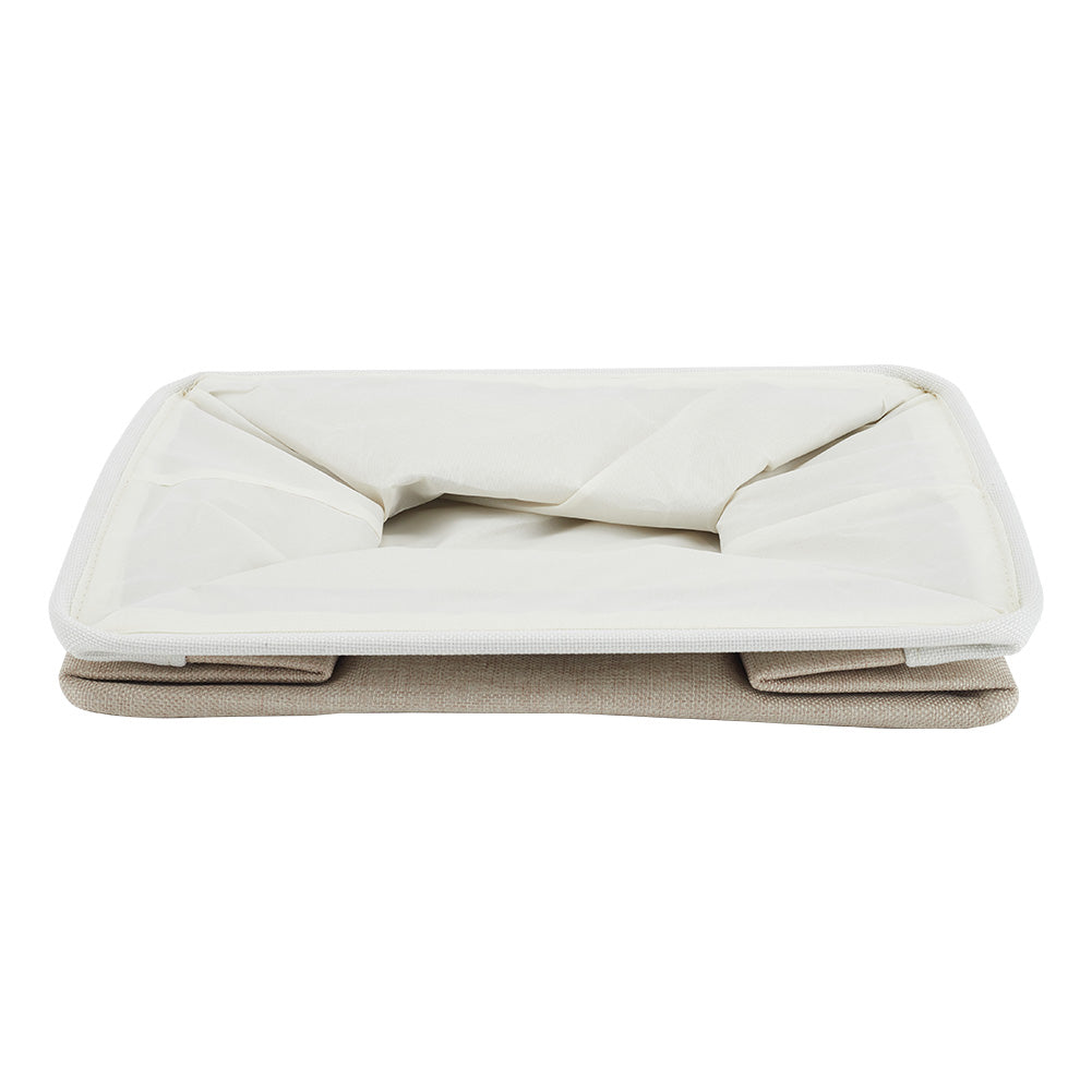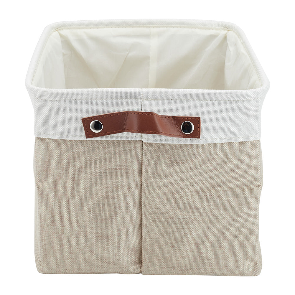 This large storage basket is perfect for organising toys, snacks, office supplies, and more. Ideal for the nursery, living room, or bathroom, it quickly clears up clutter while adding a touch of style. Made from a durable cotton and linen blend, it is rigid to the touch and wear-resistant, ensuring long-lasting use. Fitted with PU handles on both sides, it is easy to carry from room to room, combining practicality with modern design.