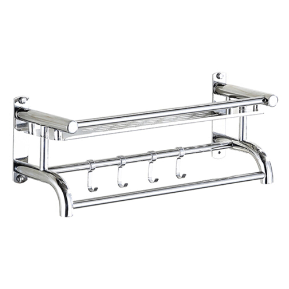 Add a touch of modern elegance to your bathroom with the Wall Mounted Stainless Steel Bathroom Storage Shelf. Crafted from premium stainless steel, this sleek storage rack is rustproof, corrosion-resistant, and built to last in humid environments. The spacious multi-tier design provides ample room for storing shampoo, shower gel, skincare, and other bathroom essentials. With a polished chrome finish, it brings a contemporary shine to your space. Featuring a drilling-free mounting design, itâ??s easy to install without damaging your walls â?? offering both style and convenience for everyday use.