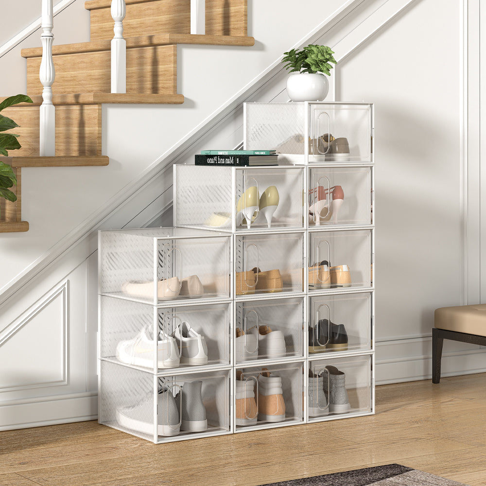 Keep your shoes neatly arranged with the 12 Piece Stackable Footwear Storage Unit. Designed with a clear front and magnetic door, each box lets you easily find and access your footwear while keeping it clean and dust-free. The transparent and stackable design helps maximize your space, making it perfect for closets, entryways, and under-bed storage. Built from durable PP and ABS plastic, the boxes are resistant to deformation and equipped with ventilation holes at the back to maintain dryness and freshness. Quick and simple to assemble, this set is ideal for keeping your home tidy and organized.