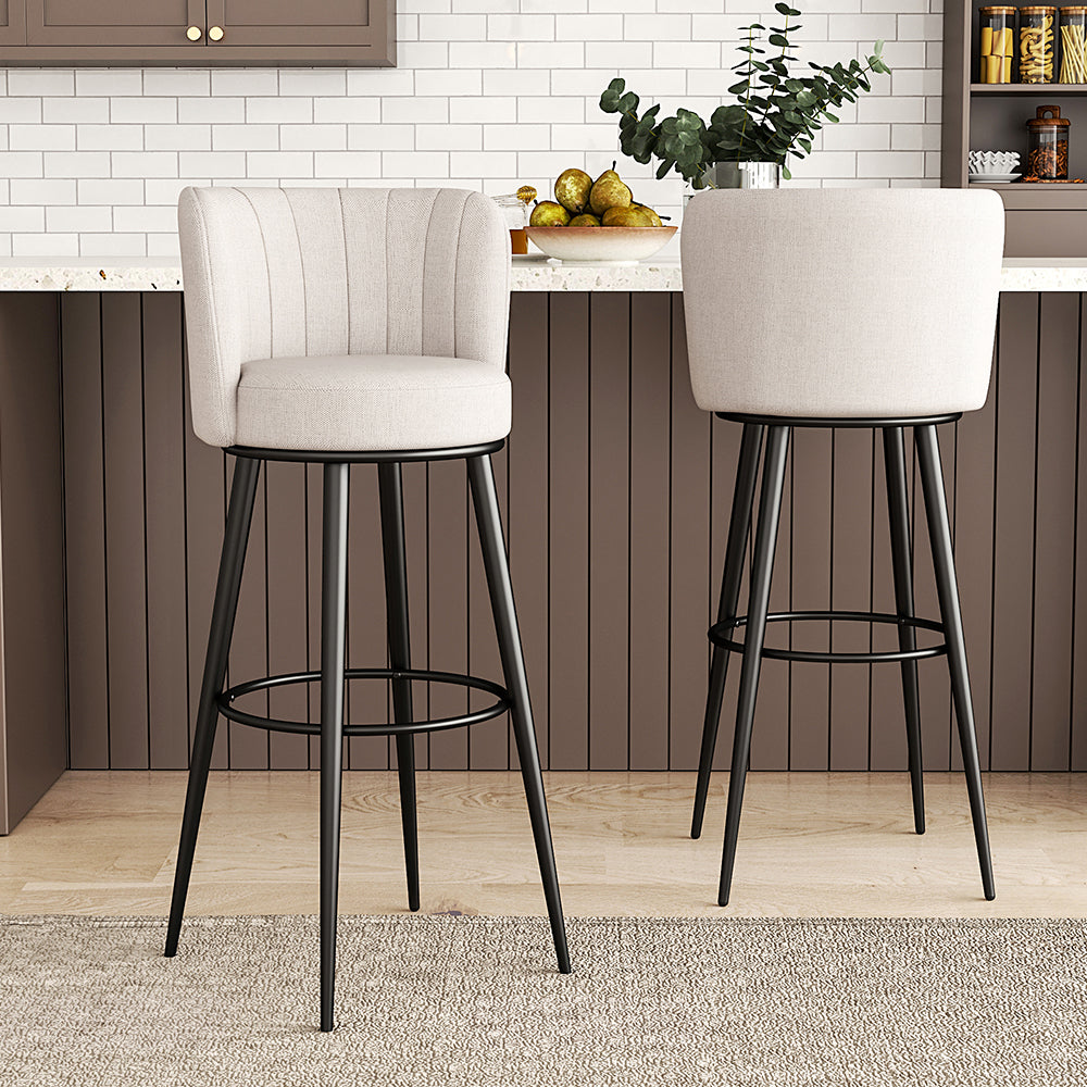 The 2 Piece Modern Linen Bar Chairs Set combines timeless style with everyday comfort, ideal for kitchens or home bars. Each stool features a durable black lacquered metal frame and a soft linen seat with elegant vertical stripes for a modern yet classic appeal. The splayed legs and adjustable foot glides enhance stability and comfort on any surface. Perfect for casual dining or evening drinks, these stools bring refined design and reliable support to your space.