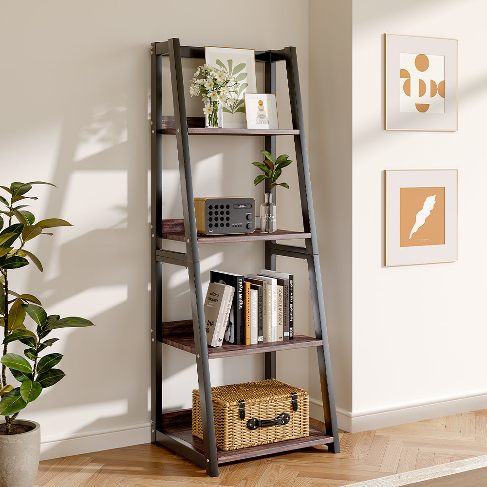 Upgrade the organisation of your office or study with the H&O Direct Ladder Shelf. Crafted from high-quality wood and sturdy metal, this shelf is designed to last while adding a vintage farmhouse charm to your space. Its four-tiered shelves feature a warm brown finish with visible wood grain, while the shelves progressively decrease in size from bottom to top to accommodate items of different dimensions. The industrial-inspired metal frame provides a sleek, streamlined look, making it both practical and stylish.