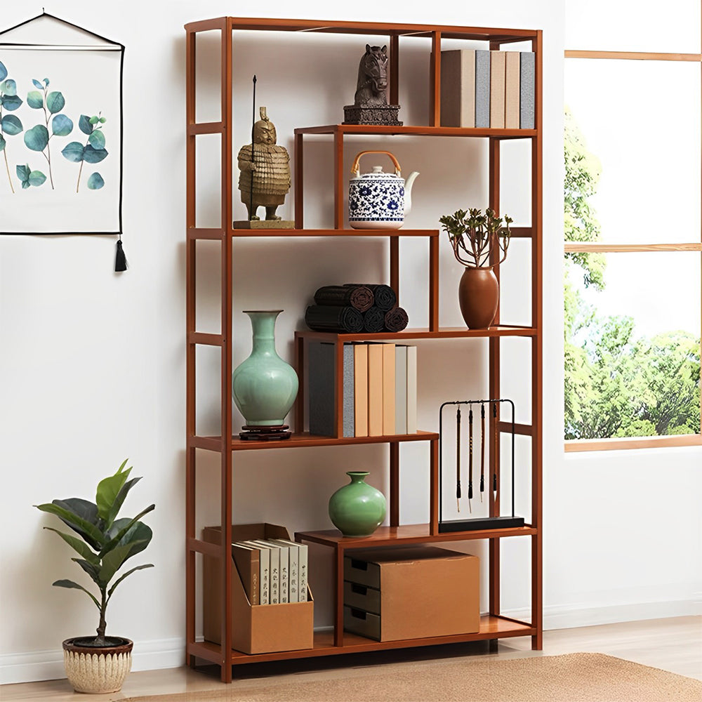 Add a contemporary yet natural touch to your home or office with this tall geometric display rack. Crafted from high-quality wood, it features an open, stylish design perfect for showcasing books, magazines, decorations, or collectibles. Its reinforced structure ensures stability, while the natural wood tones blend seamlessly with a variety of interior styles. Ideal for hallways, living rooms, or offices, this rack combines practicality with decorative appeal.