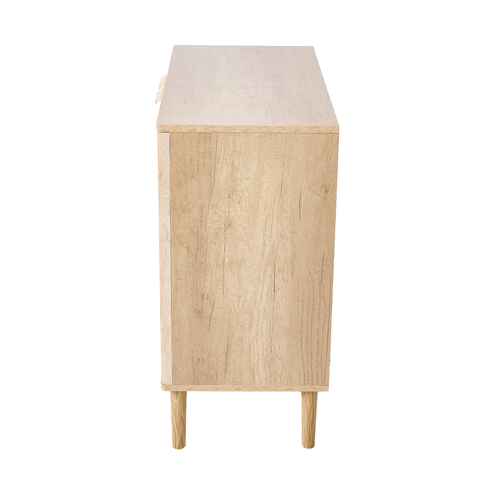 The Adjustable Shelved Storage Sideboard combines elegant design with practical storage for contemporary living spaces. Its moisture-resistant melamine surface and premium particle board construction ensure durability and ease of cleaning. Two spacious shelves behind double doors provide flexible organisation, with one adjustable shelf for customised storage. Solid wood legs and a raised base deliver stability while protecting floors from dust and moisture. The anti-tip device adds extra safety, making it ideal for family homes.