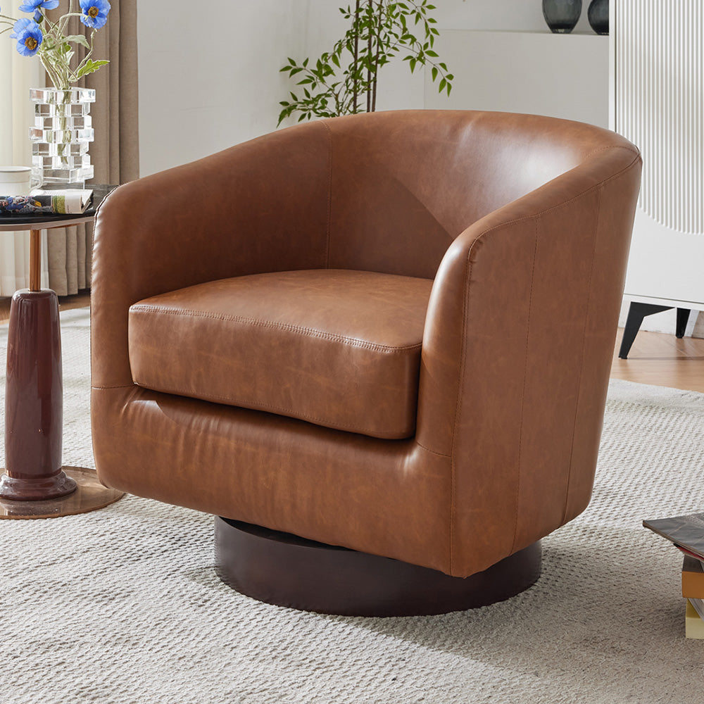 The Linen Upholstered Swivel Armchair combines contemporary design with refined comfort, ideal for living rooms, studies, or offices. Its breathable linen upholstery and high-density sponge cushion provide soft support and pressure relief. Integrated armrests enhance comfort while a sturdy wood frame ensures durability. Stylish vertical piping adds visual sophistication, and the 360° swivel base allows effortless movement and flexibility. Generously sized, it offers ample space for relaxing in both style and comfort.