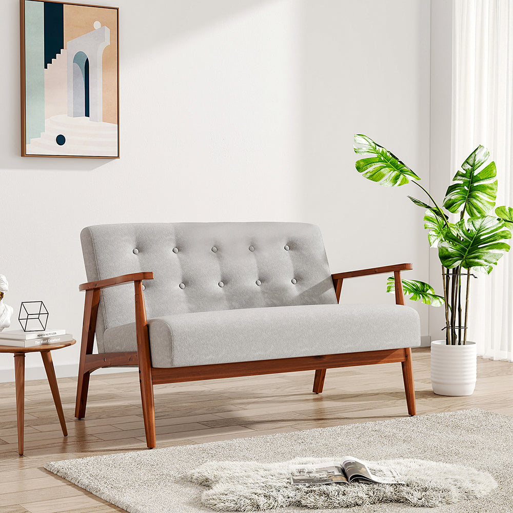 This Classic Button-Tufted Lounge Sofa combines classic design with exceptional comfort. Featuring a subtly tufted seatback and a vintage walnut-finished rubberwood frame, it creates a timeless accent for any living space. The soft, breathable linen upholstery covers a high-density sponge cushion that provides long-lasting comfort, while the slightly reclined backrest supports a relaxed posture. Perfect for reading, watching TV, or simply unwinding, this sofa balances style, durability, and everyday usability.