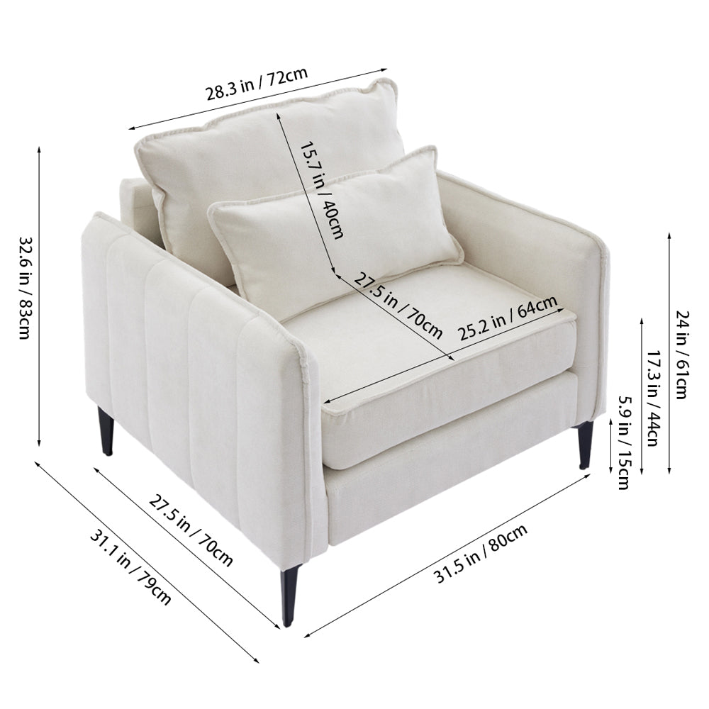 The Comfortable Linen Sofa Armchair offers luxurious comfort and sophisticated style, perfect for living rooms, studies, or bedrooms. Upholstered in breathable linen, it features supportive back and lumbar cushions for prolonged relaxation. Integrated armrests enhance comfort while sturdy wood and iron frame ensures stability and durability. Vertical piping detailing adds a refined textural element, complementing contemporary or Nordic interiors. Generously sized, it provides ample space to sit back and unwind in style.