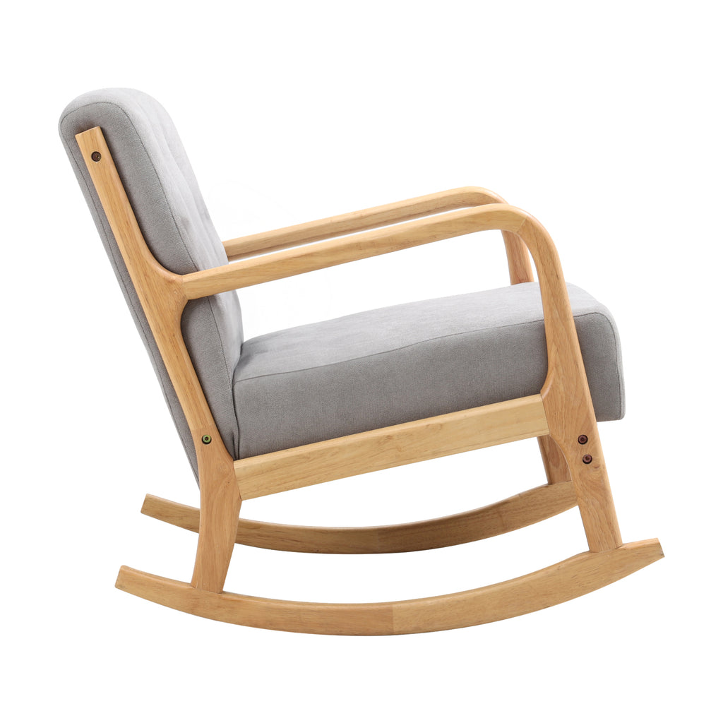 The Contemporary Linen Rocking Chair combines comfort and modern style for any living space. Its gently curved silhouette, buttoned square back, and soft linen cushion provide a relaxing seating experience. The solid wood frame and rubberwood runners ensure durability and stability, while the removable pillow cover makes cleaning effortless. Perfect as a stylish accent or functional rocker, it adds elegance and comfort to bedrooms, living rooms, or reading nooks.