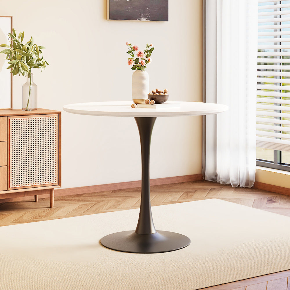 The Contemporary Round Wooden Table with Metal Base is a stylish and versatile addition to any dining or living space. Its smooth MDF tabletop provides a durable and easy-to-clean surface, while the tulip-style metal base offers excellent stability and resistance to rust. Designed to comfortably seat up to 4 people, this round table combines contemporary design with functionality, making it ideal for dining rooms, kitchens, or conversation areas.