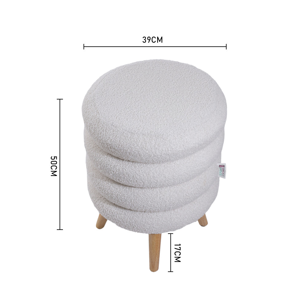 The Creative Teddy Fabric Footstool blends comfort with playful design, perfect for living rooms or lounges. Its soft teddy fabric and foam padding provide a cosy resting place for your feet or an extra seat for guests. Supported by sturdy splayed solid wood legs, it ensures stability and long-lasting use. The circular minimalist shape adds a stylish accent to any interior, enhancing both comfort and décor. Ideal for casual seating or as a decorative addition to your home.