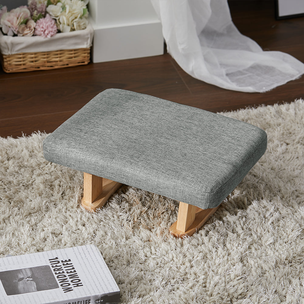 Livingandhome Linen Upholstered Footstool with Wooden Legs