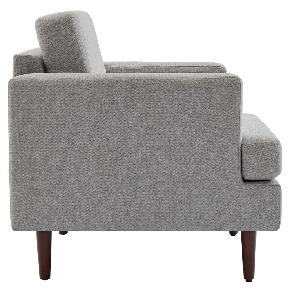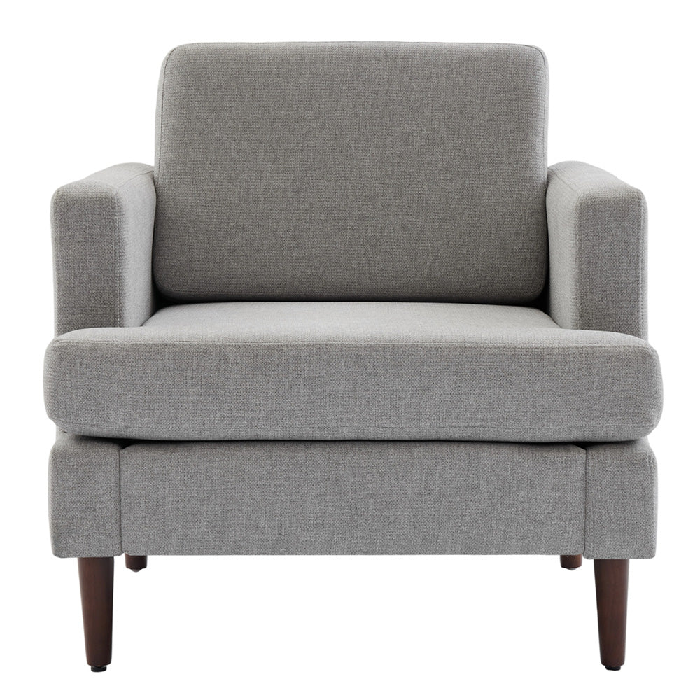 The Linen Upholstered Mid-Century Chair combines timeless design with exceptional comfort, ideal for living rooms, bedrooms, studies, or reception areas. Upholstered in breathable linen, its high-density foam seat cushion provides resilient support for long-lasting comfort. Integrated armrests allow natural arm positioning while a supportive backrest enhances relaxation. Sturdy wood frame and walnut-coloured legs ensure stability and durability. Chic minimalist lines make this chair a versatile and elegant addition to any interior.