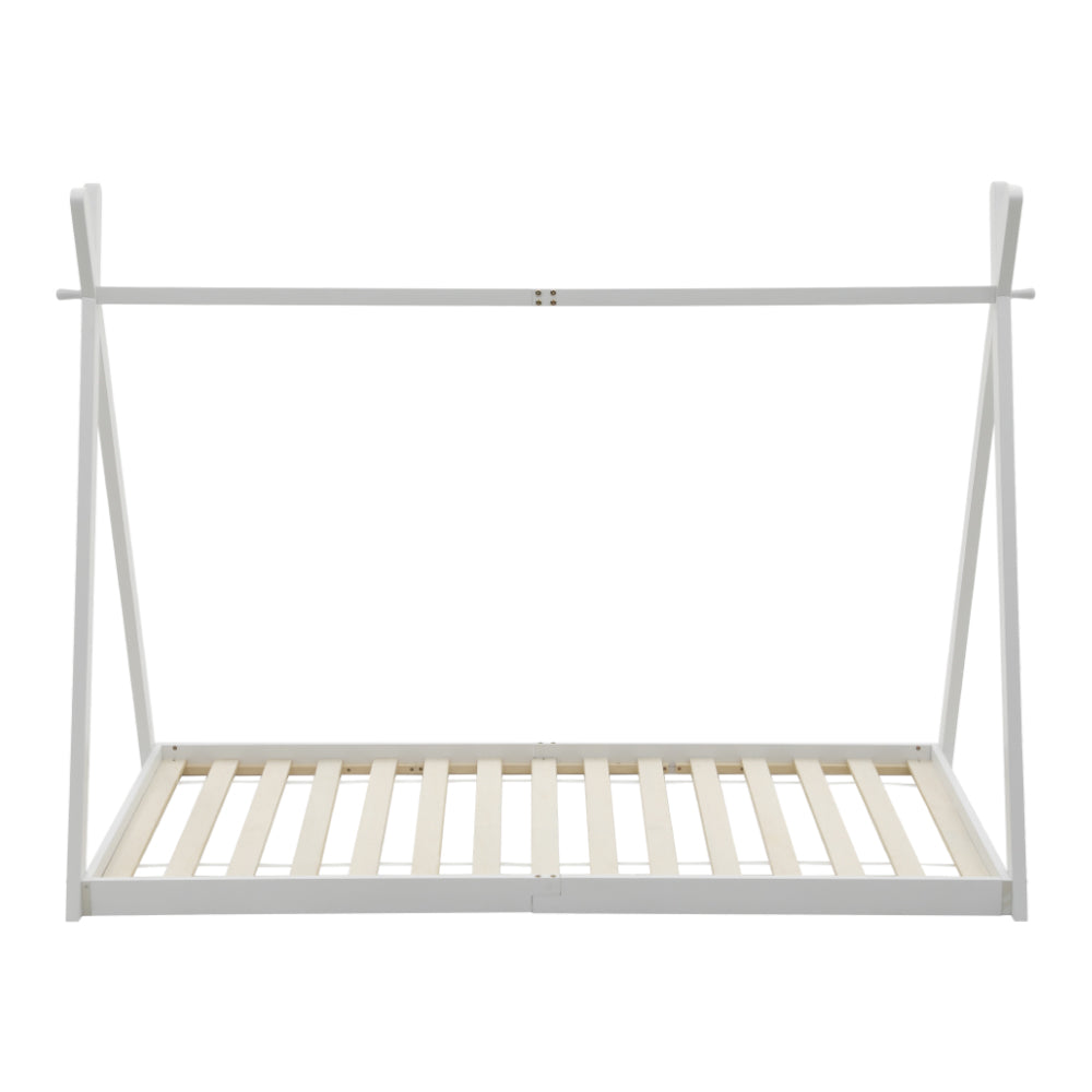 The Low Base Montessori Kids Floor Bed offers a safe and stylish sleeping solution, perfect for toddlers transitioning from infant beds. Constructed from solid pine wood and coated with non-toxic paint, it ensures durability and peace of mind. The low base makes it easy for children to climb in and out independently, while the slatted base adds extra stability. Its simple triangular frame can be customised with canvas covers, lights, or vines, turning the bed into a playful indoor camping space. Ideal for creating a fun and cosy bedroom environment for little ones.