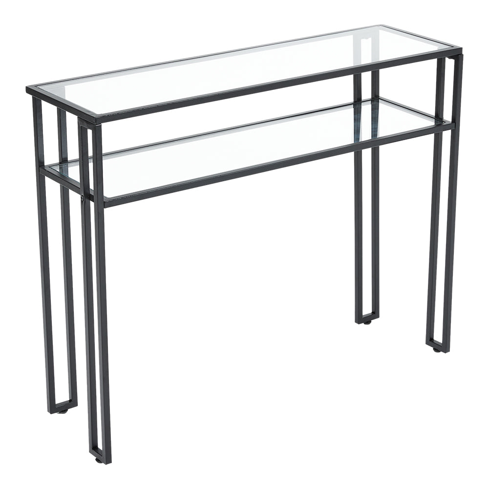 Enhance your entryway or living space with the Livingandhome Tempered Glass Console Table. Featuring a sleek geometric design, this table provides a stylish and functional surface for small essentials such as keys, letters, and decorative items. The clear tempered glass top and shelf allow easy visibility, while the spacious bottom accommodates larger belongings, helping you keep your space organised and efficient. Durable materials ensure long-lasting use, making it a practical addition to any contemporary home.